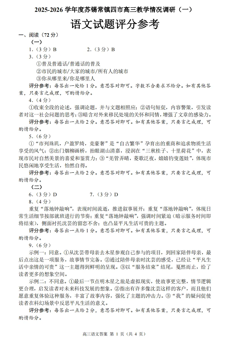 【26届苏锡常镇一模英语卷评析】