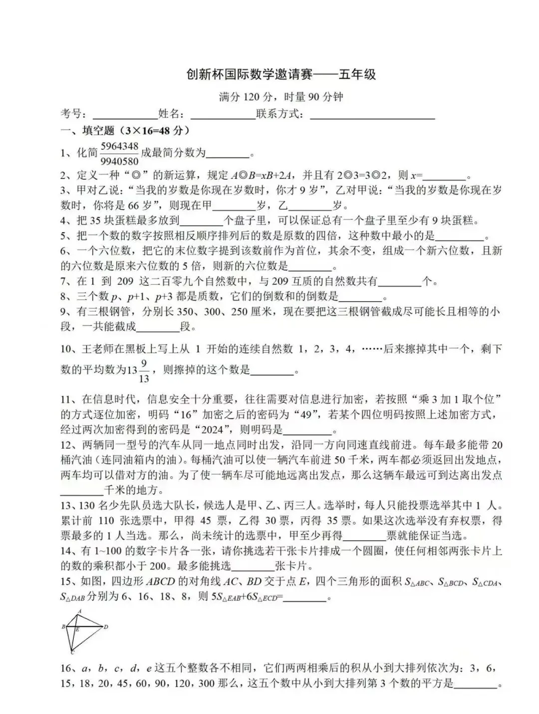 手里这张创新杯五年级数学邀请赛试卷,不仅是小学阶段的“荣誉证”,更是初中数学潜力的“试金石”。