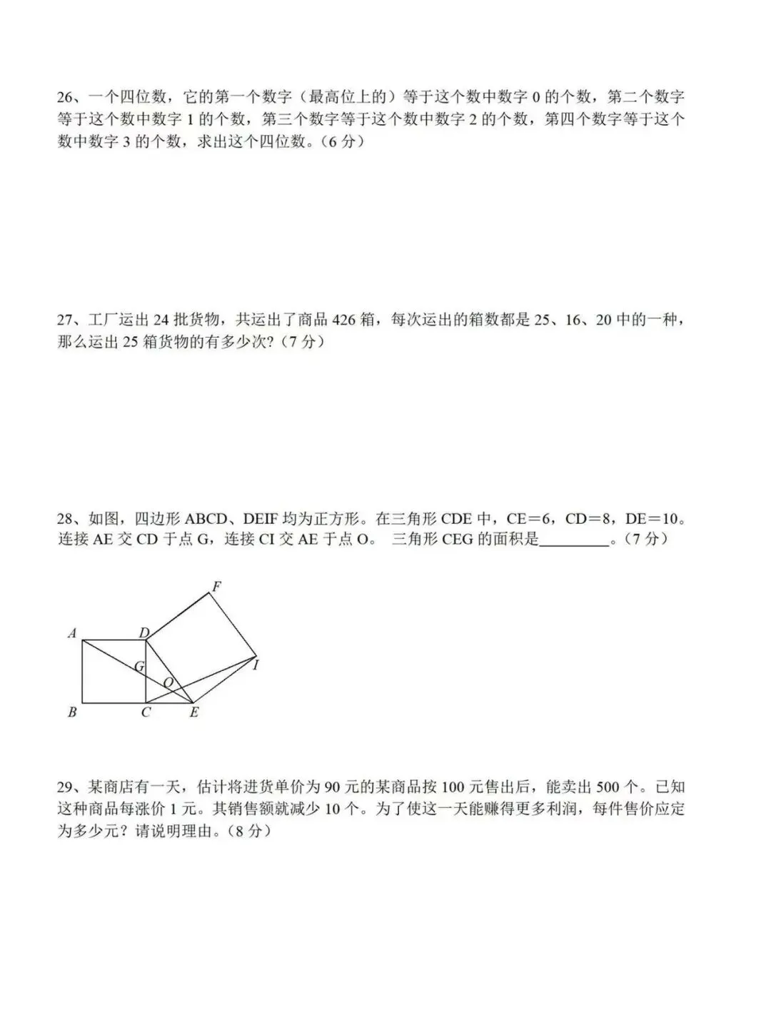 试卷原题:第26题(自指涉数字谜)、第27题(不定方程)、第16题(数字规律)