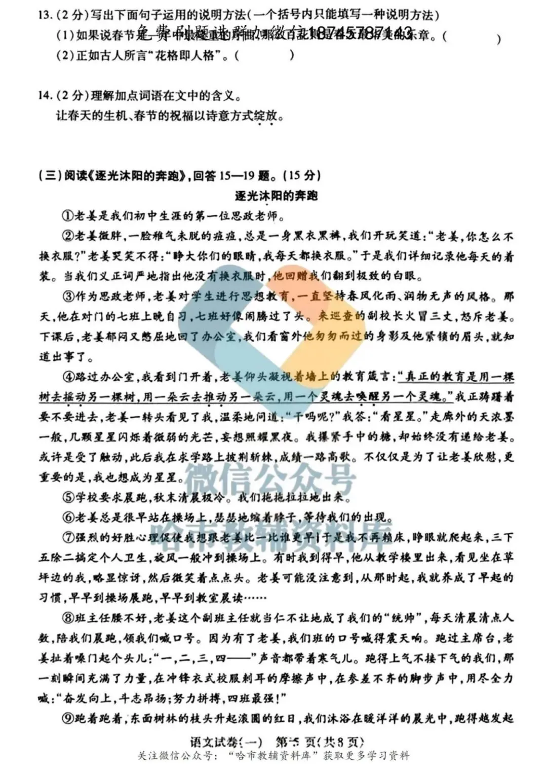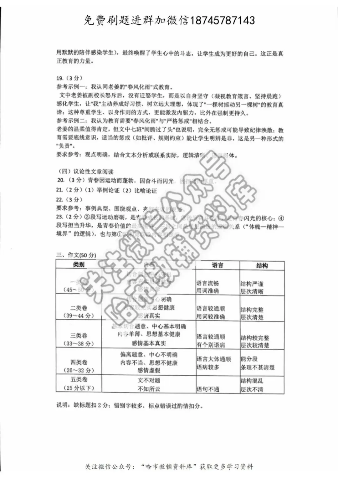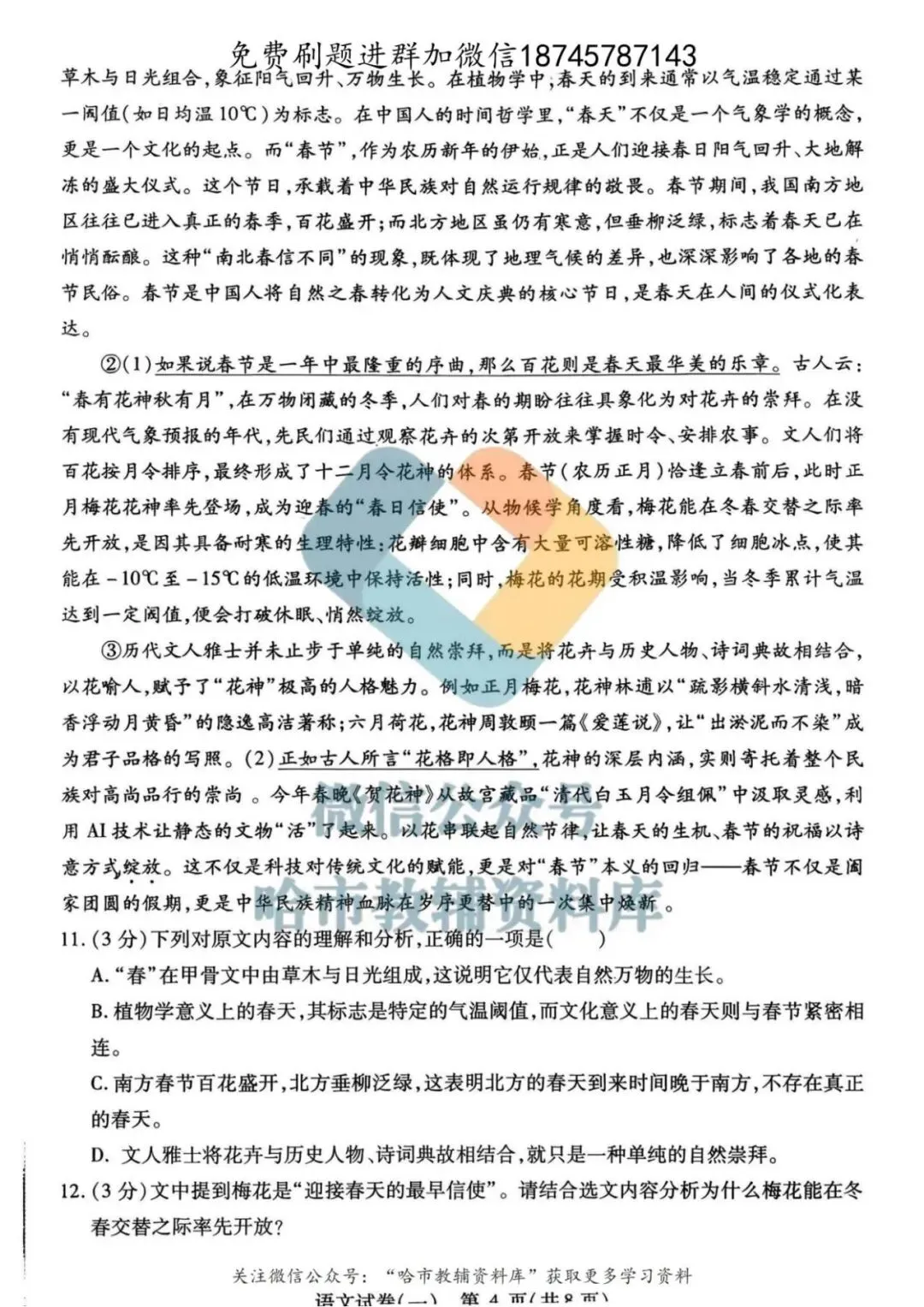 弘文资源群每天免费提供名校月考题新题型,进群添加微信!