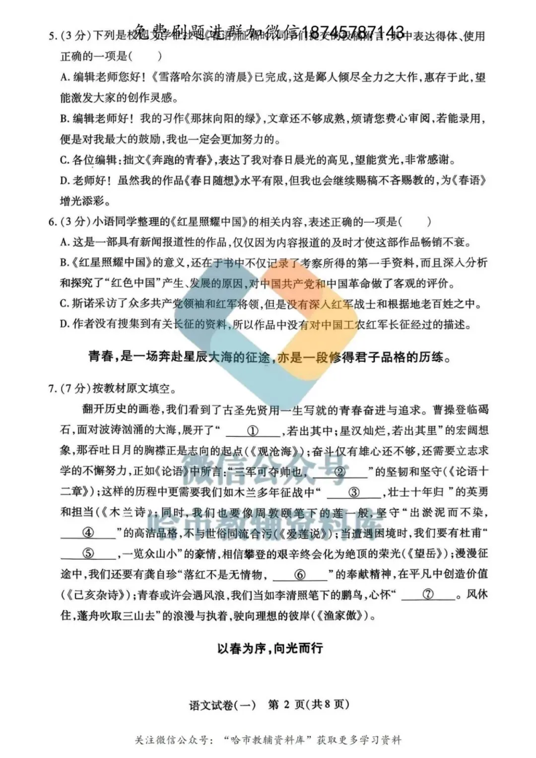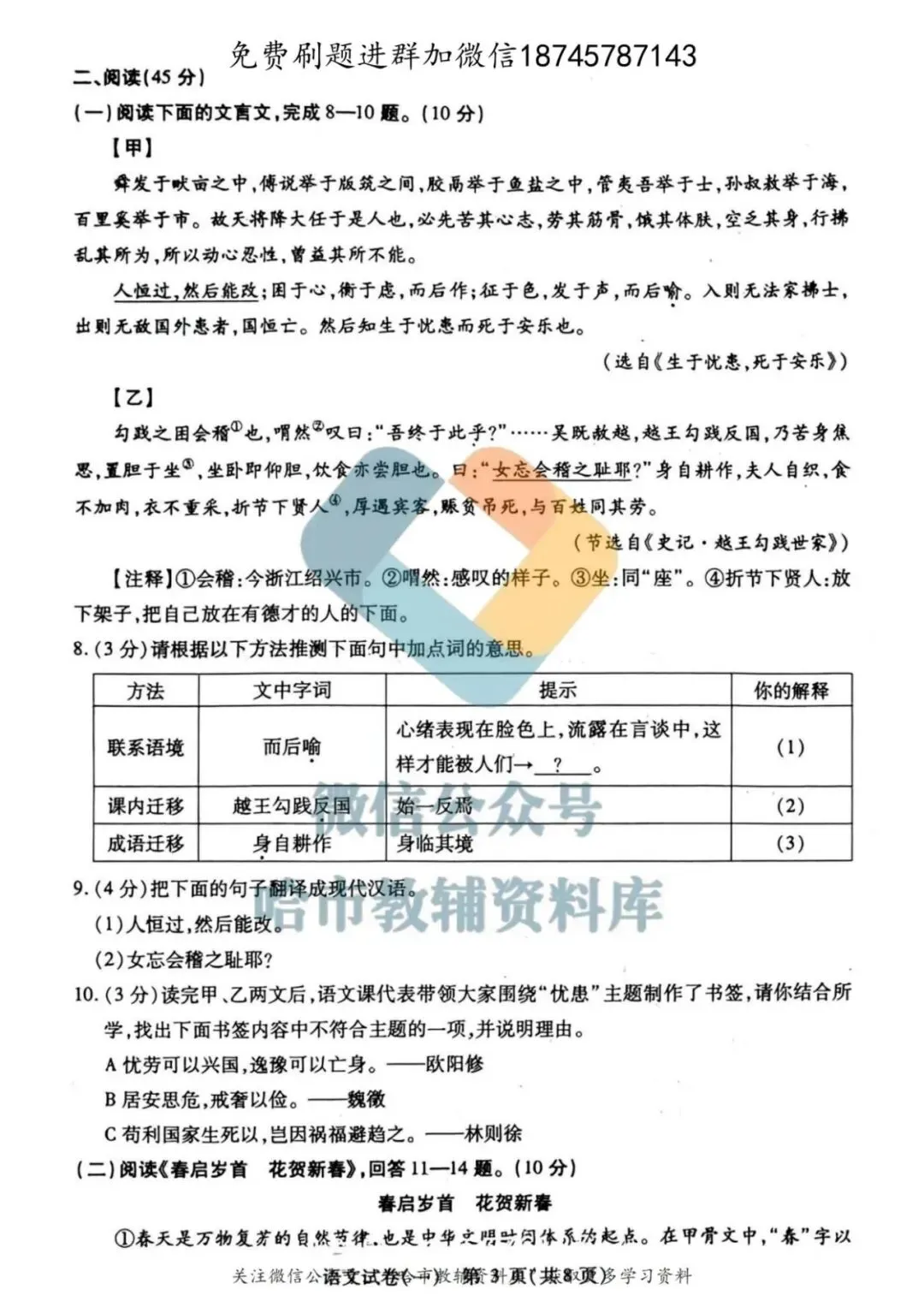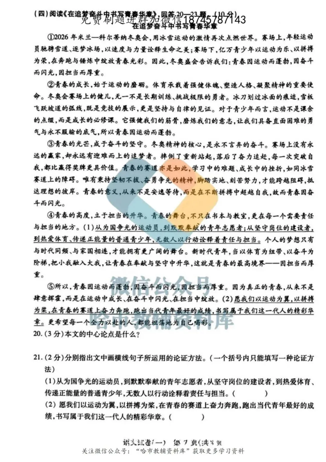弘文资源群每天免费提供名校月考题新题型,进群添加微信!