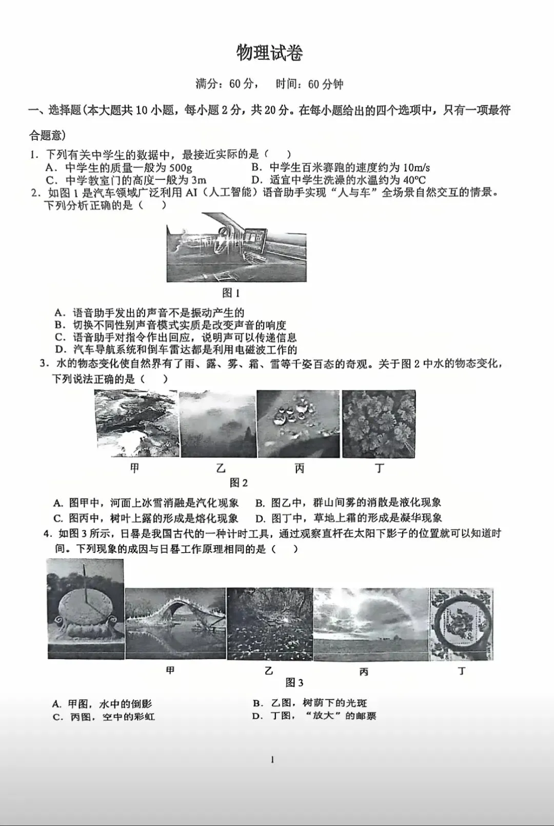 第2题:结合AI语音助手,考查声音的产生、特性、信息传递,综合性强。