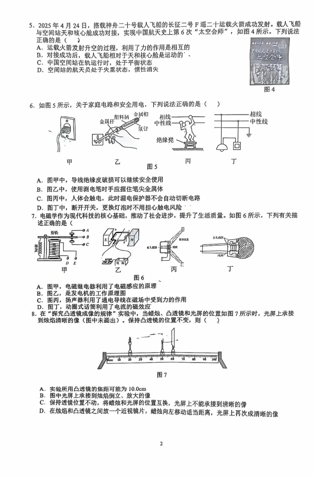 第5题:结合神舟二十号发射,考查力学基本概念(力的相互作用、参照物、平衡状态、惯性),难度适中。