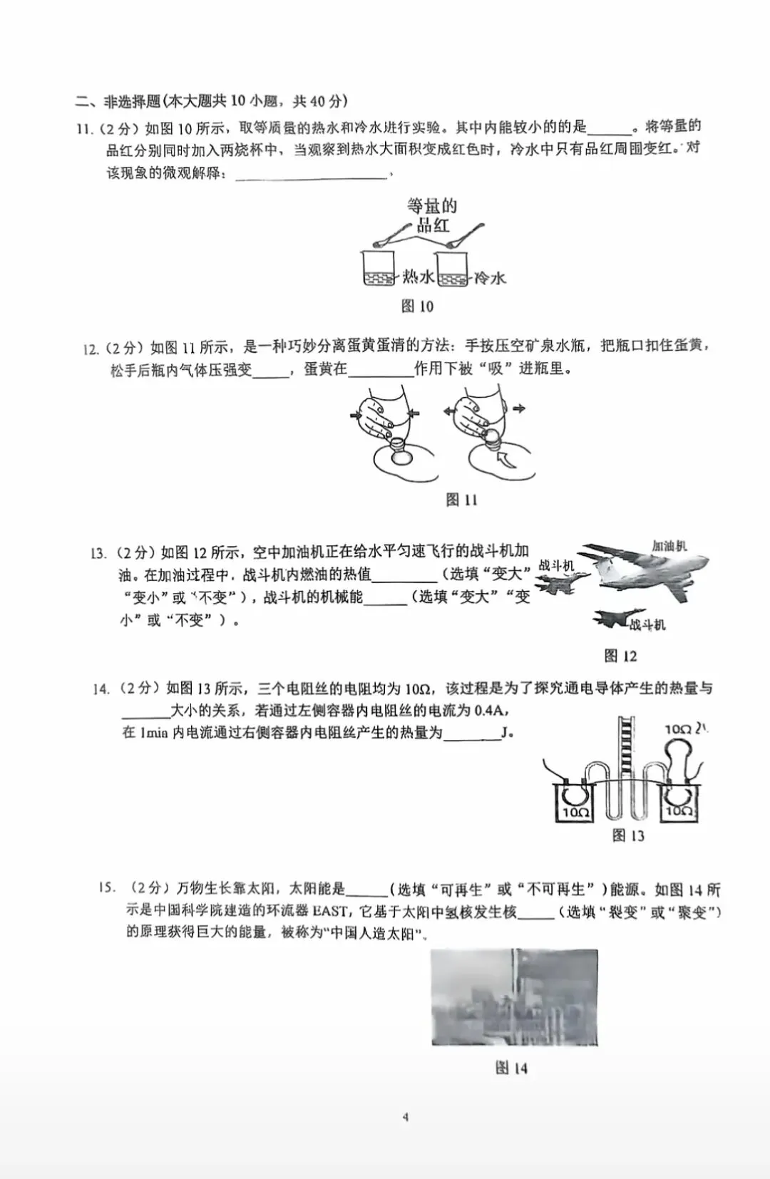 第14题:焦耳定律实验分析,考查电路连接与热量计算,中等难度。