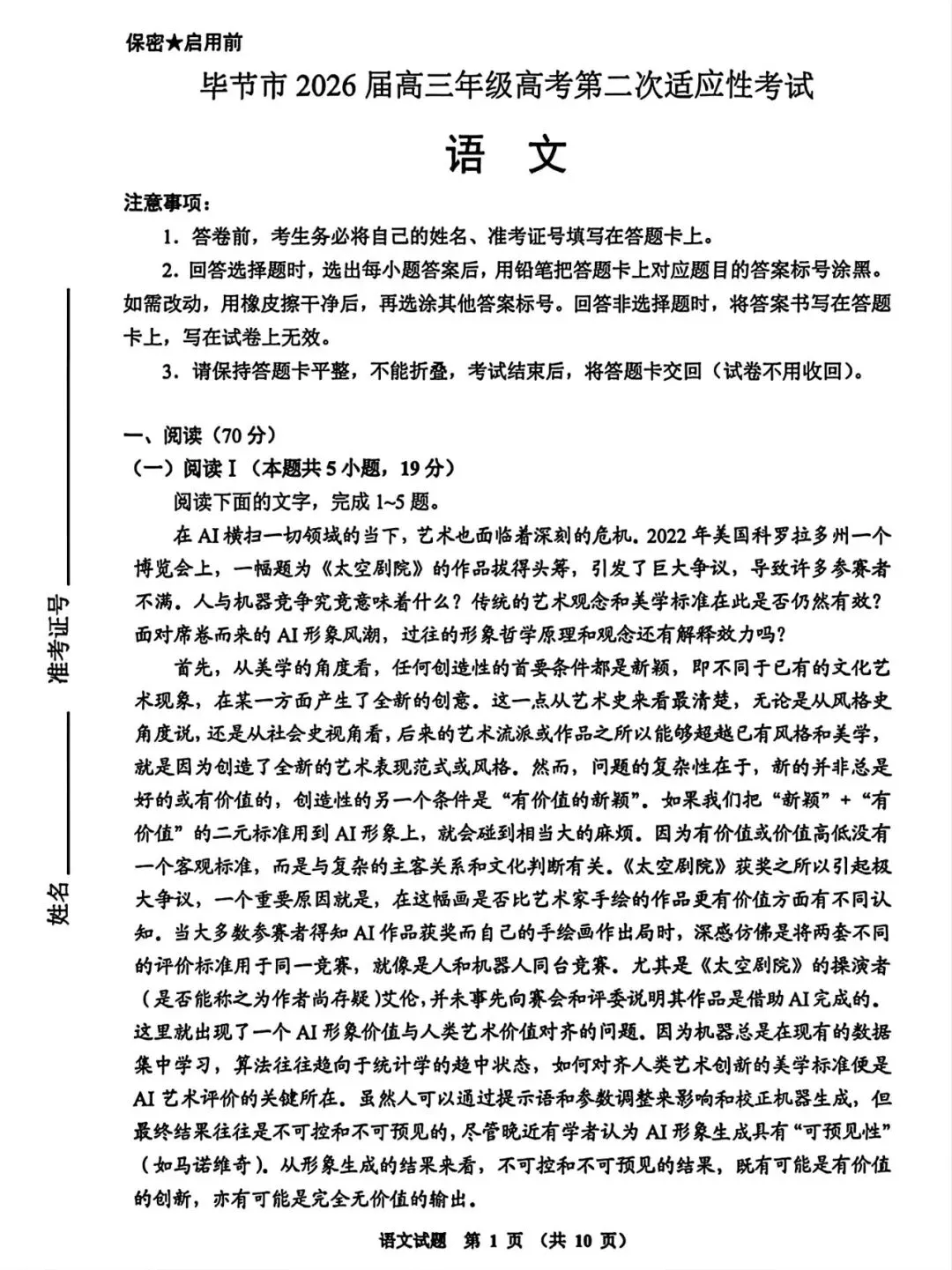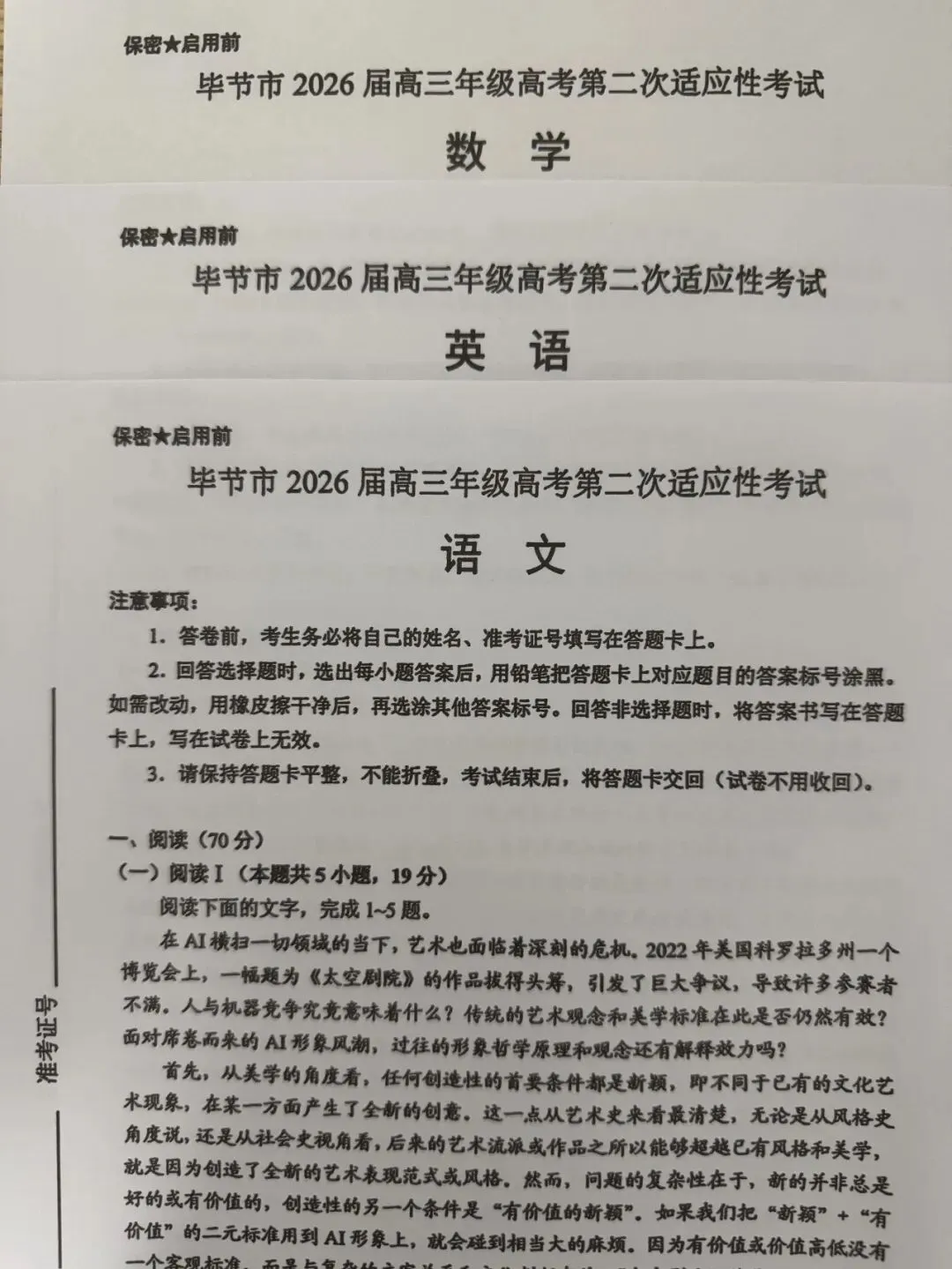 考试名称:毕节二诊毕节市2026届高三年级高考第二次适应性考试