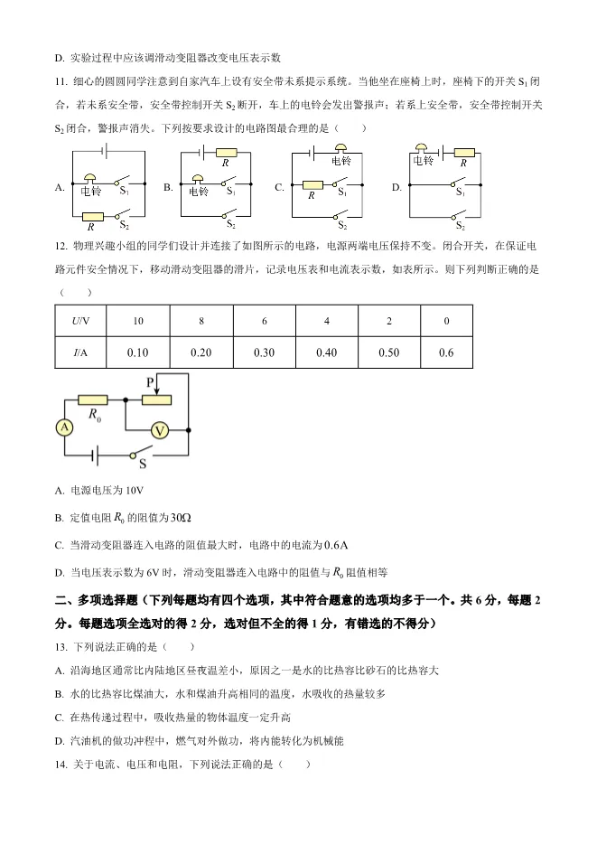 2023年北京二中初三上册期中物理试卷(附答案) 电子版试卷获取,后台回复:试卷