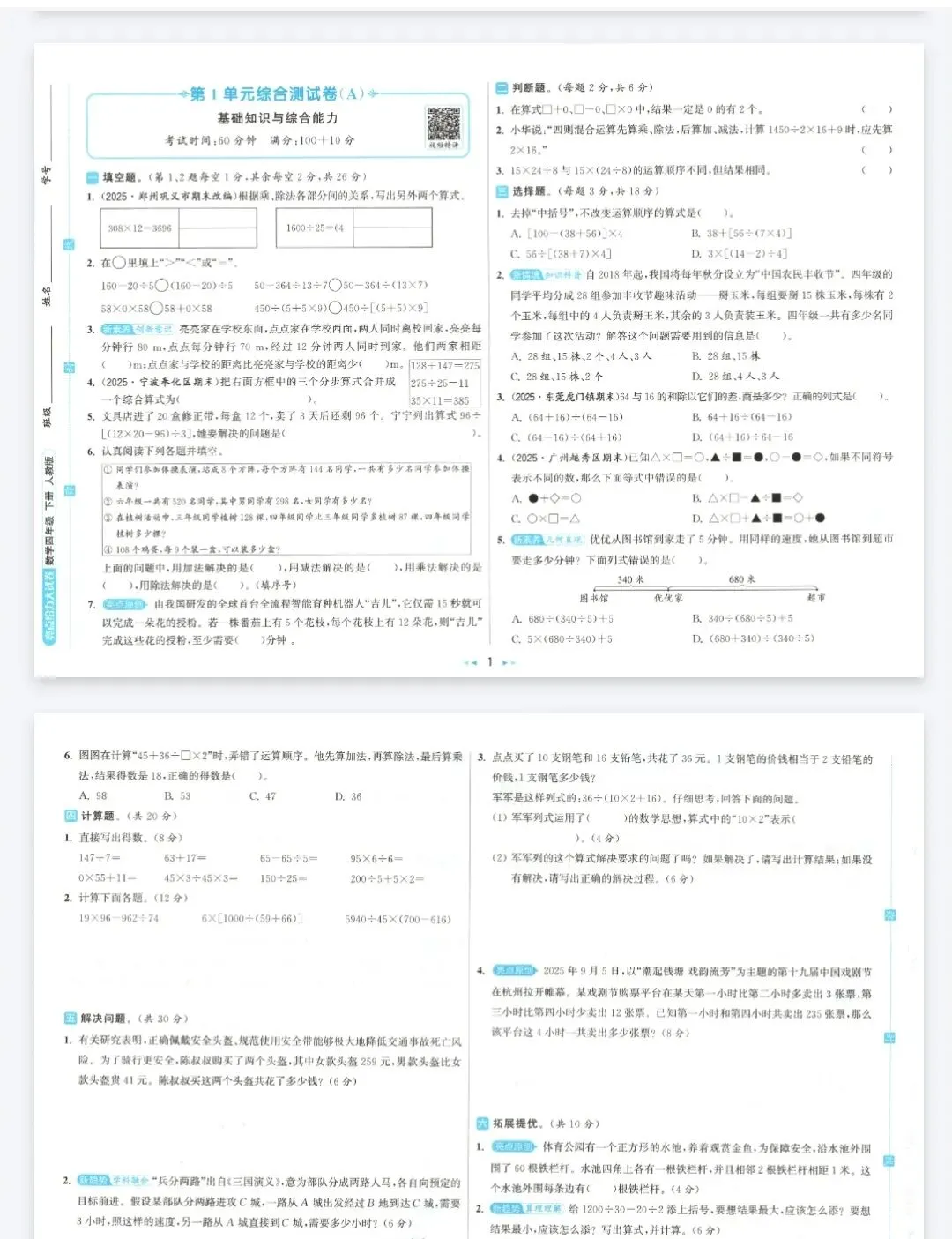 26春数学亮点给力大试卷1-6年级下册(人教版)电子版免费领!