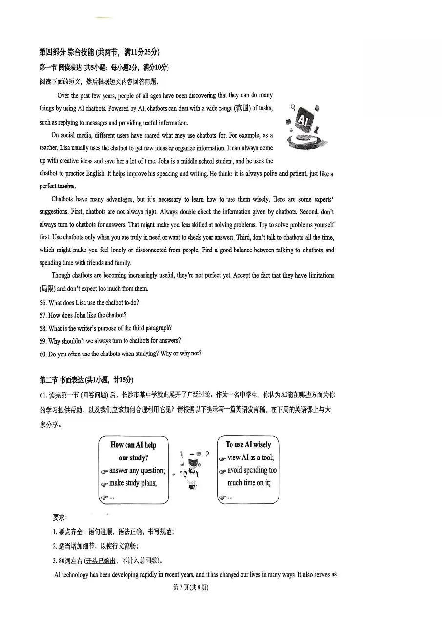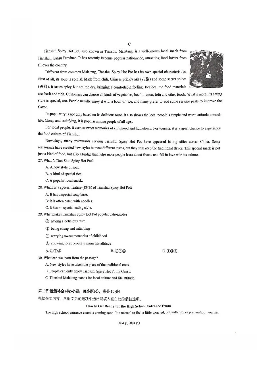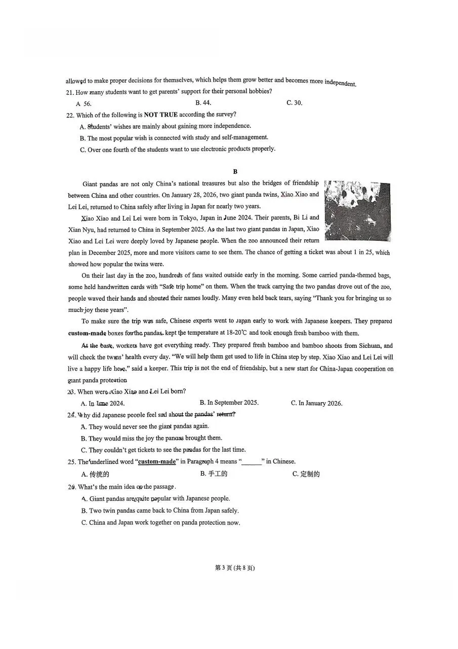 2025年沙坪坝区英语指标到校试卷+解析