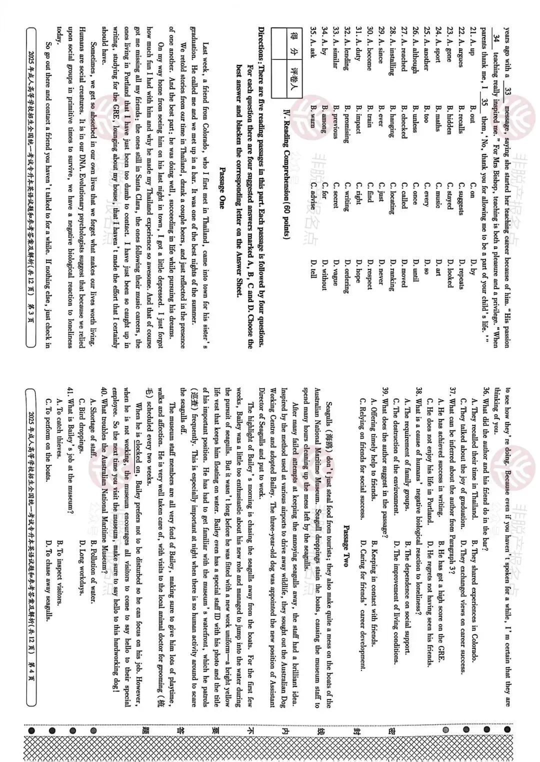 2025年成人高考真题试卷本科《英语》