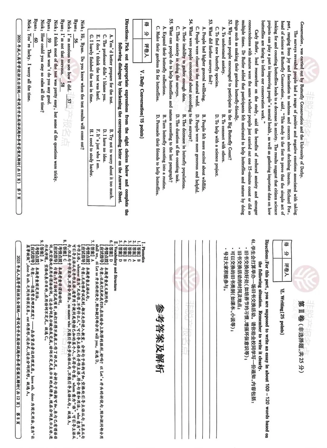 2025年英语专八真题试卷及答案解析(电子版pdf)