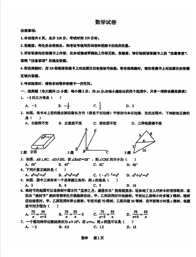 试卷|2026石家庄裕华区初三模拟考试试卷
