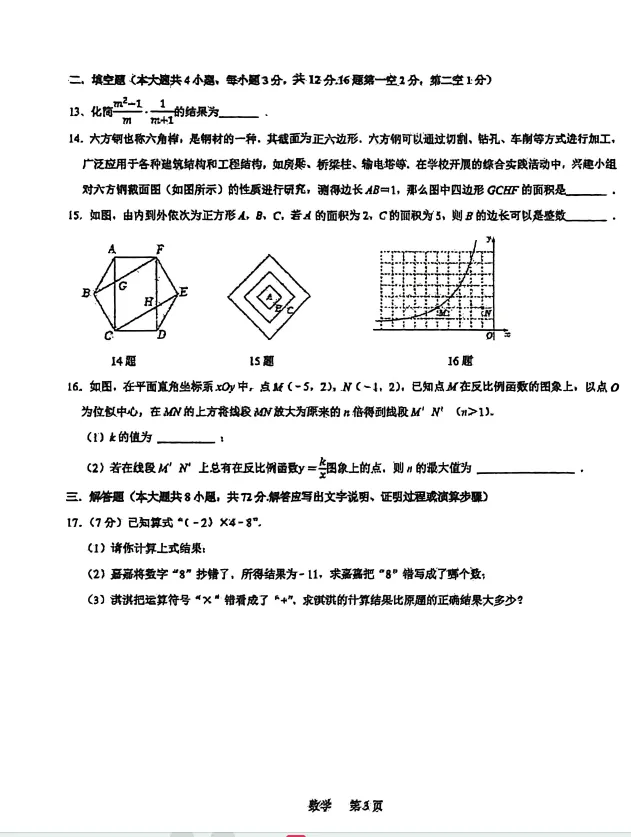 2026中考数学一模试卷