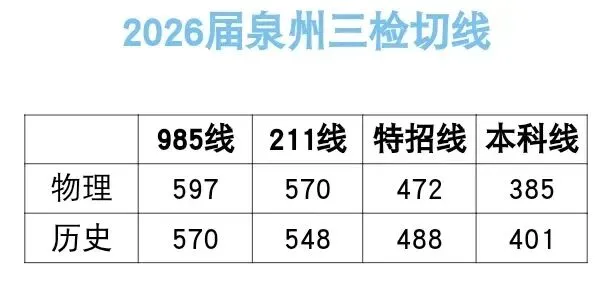 2026泉州高三三检官方切线!(附试卷资料)