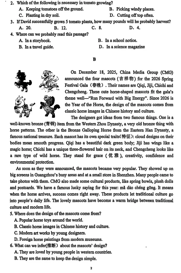 26年春七年级下册人教版英语第一次月考试卷(共2套)含答案,电子版可打印