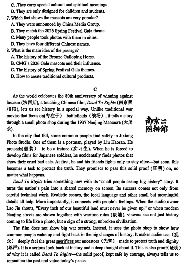 考完对答案!2026广州一模考试真题答案(在线估分)