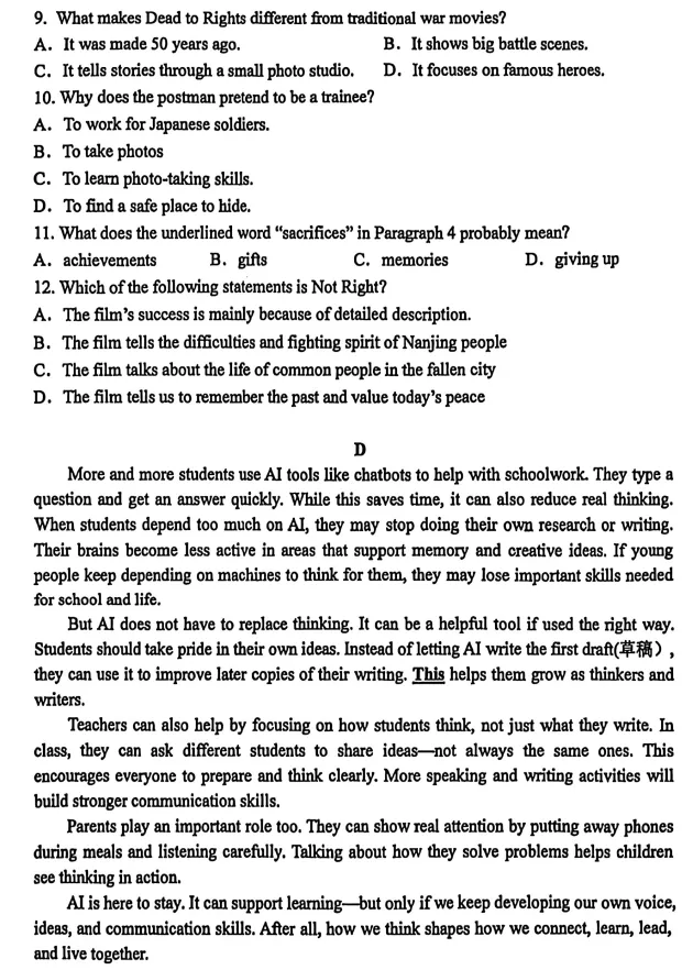 2026届上海市虹口区高考一模语文试卷+答案+范文(2026虹口高三一模)