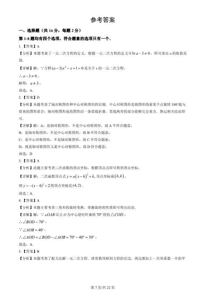 2023年北京大兴初三上册期中数学试卷(附答案) 电子版试卷获取,后台回复:试卷