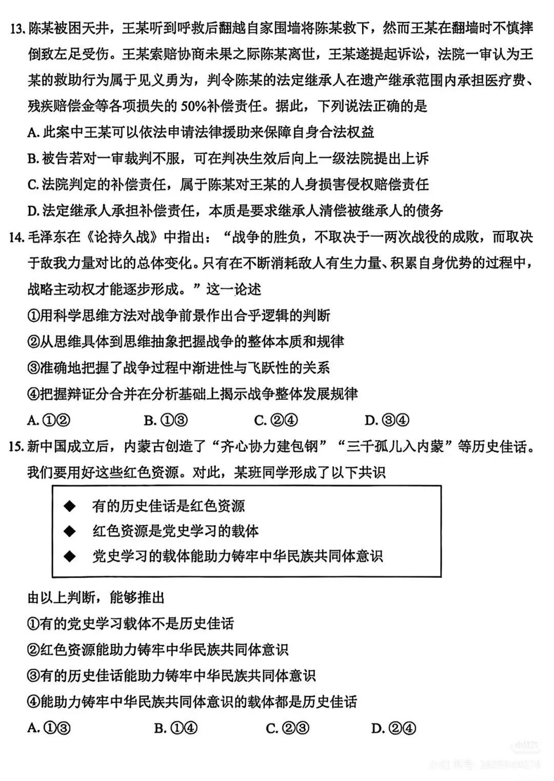 >2026届苏锡常镇高三一模政治试卷及答案(转自网络)