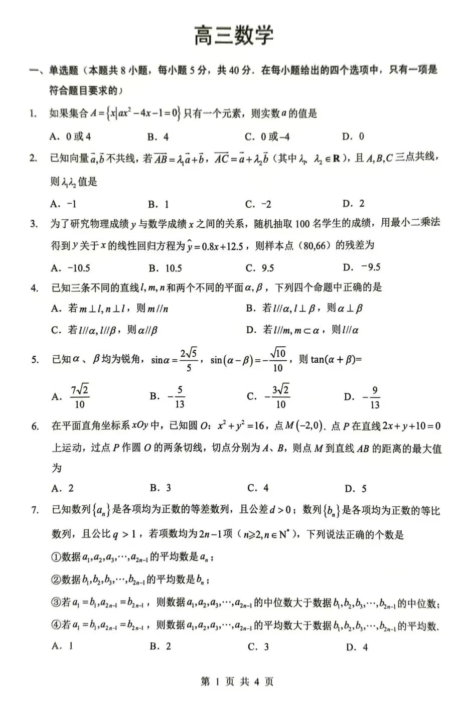 高考真题|2025年江苏省高考真题试卷及答案详解(PDF电子版,可下载打印)江苏高真题答案解析