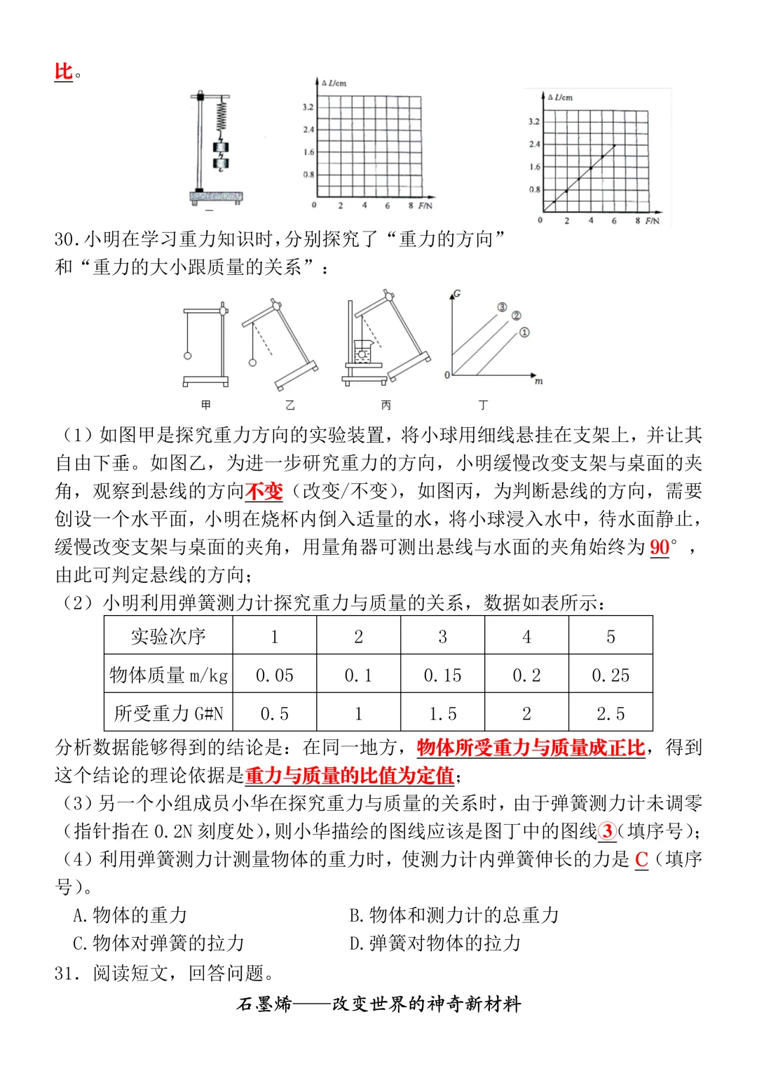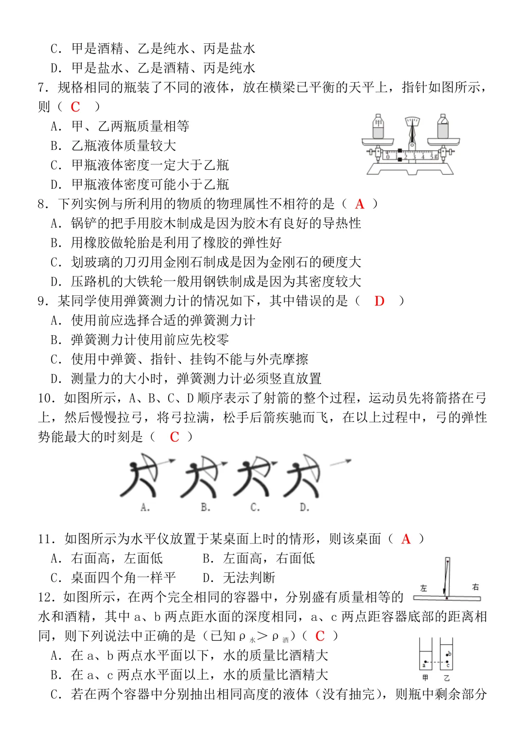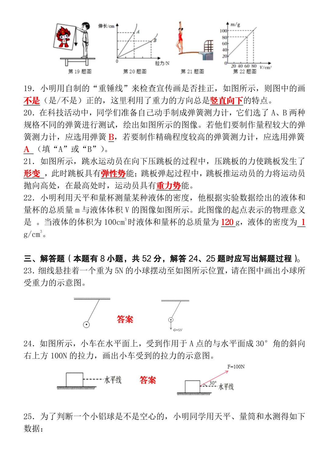>人教版八年级下册物理第一次月考试卷(含答案),稍有难度,打印练习!