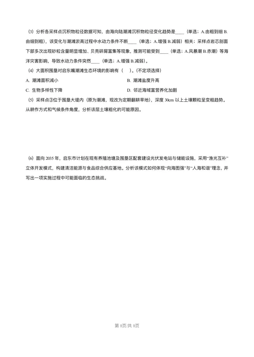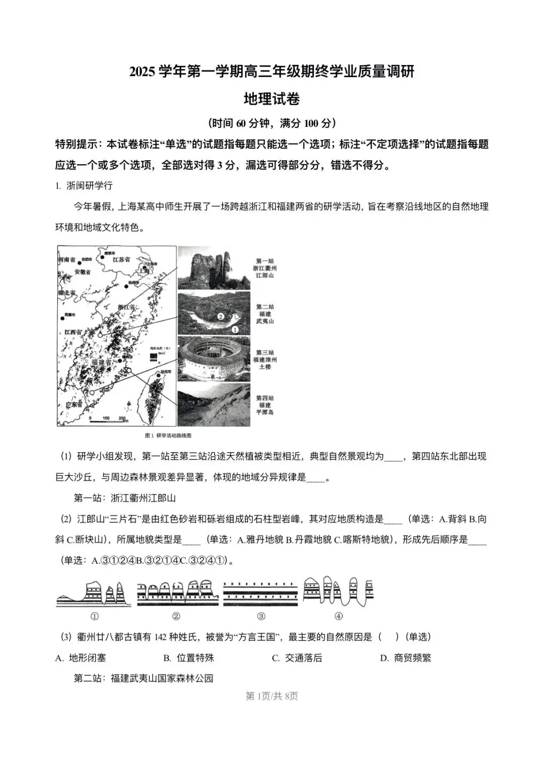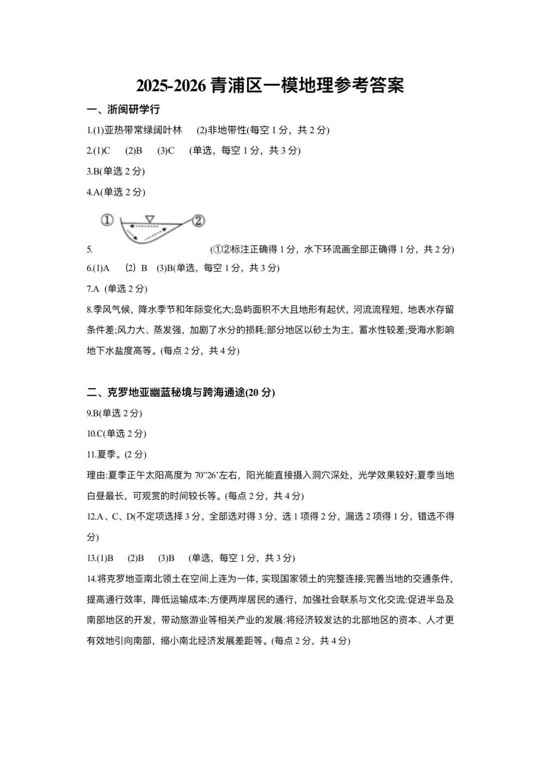 上海市青浦区2026届高三地理一模试卷和答案
