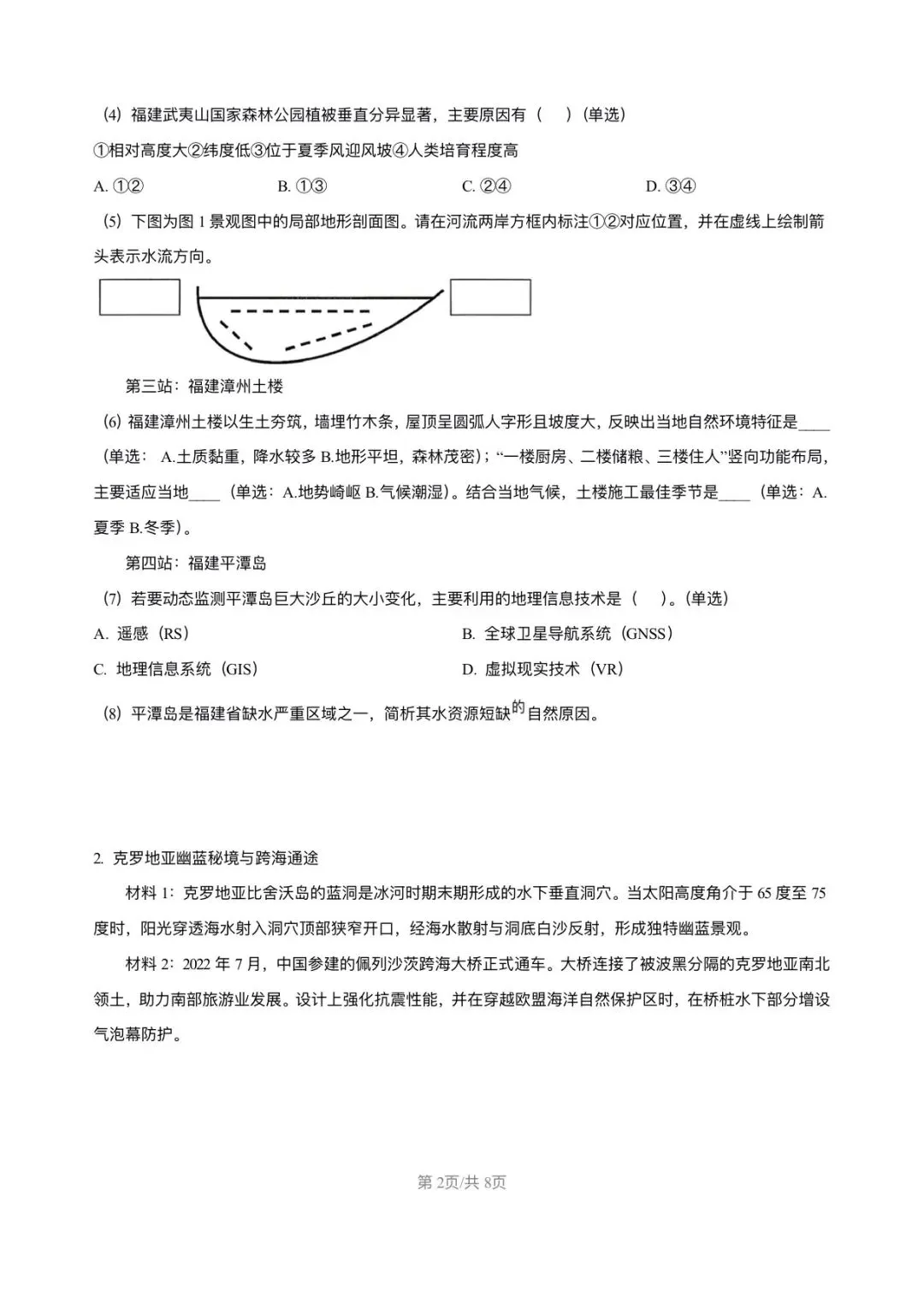 >上海市青浦区2026届高三地理一模试卷和答案