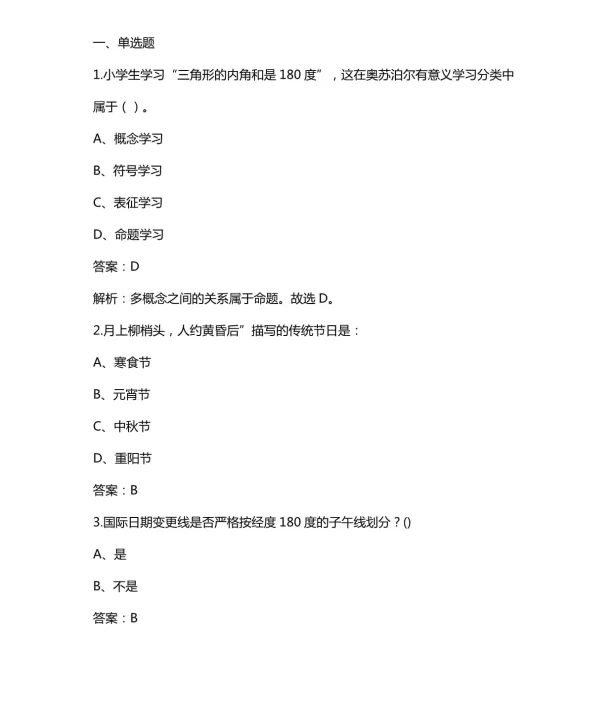 教资笔试考试历年真题及答案(2011-2026上)中小幼含科三最新整理(电子版pdf可打印)