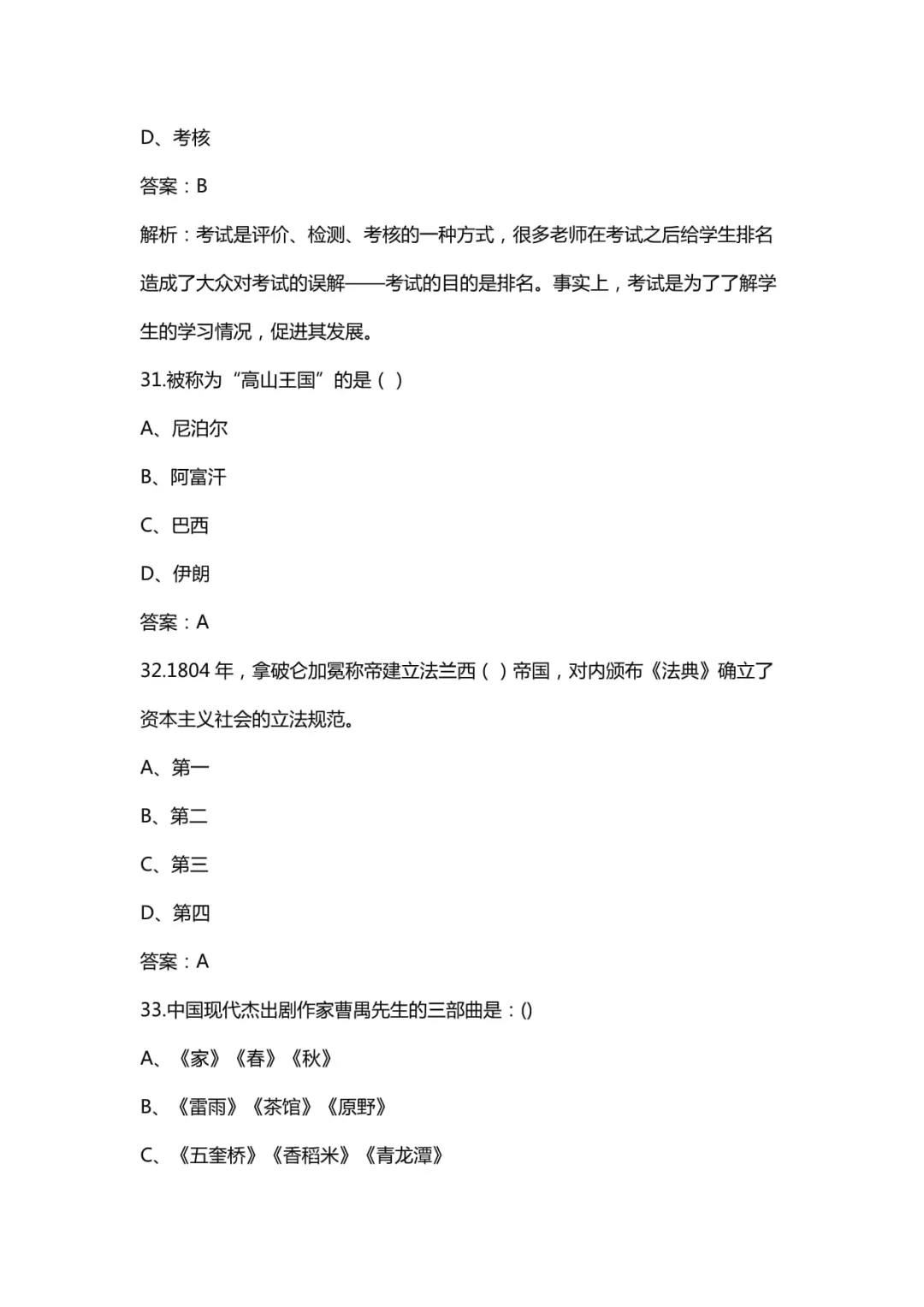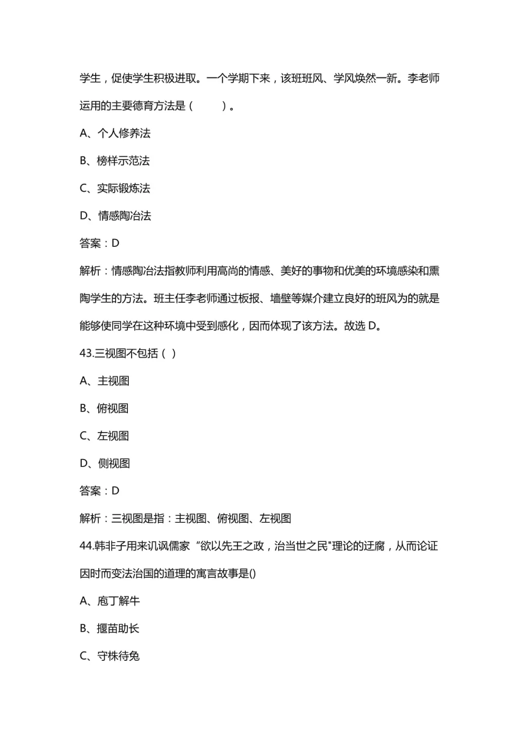 教资笔试资料:历年真题试卷及答案解析(2011-2026上)中小幼含科三A4打印版