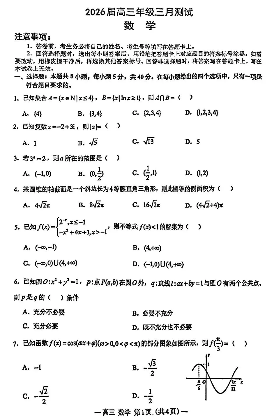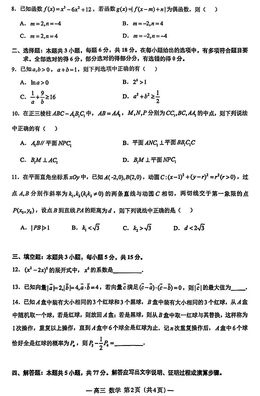 >2026届高三南昌一模试卷及答案