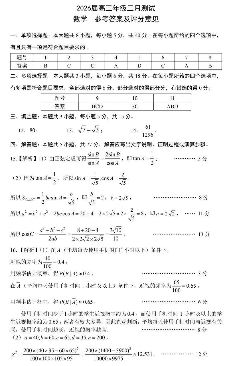 2026届湖北省楚天协作体高三3月联考试卷及答案解析