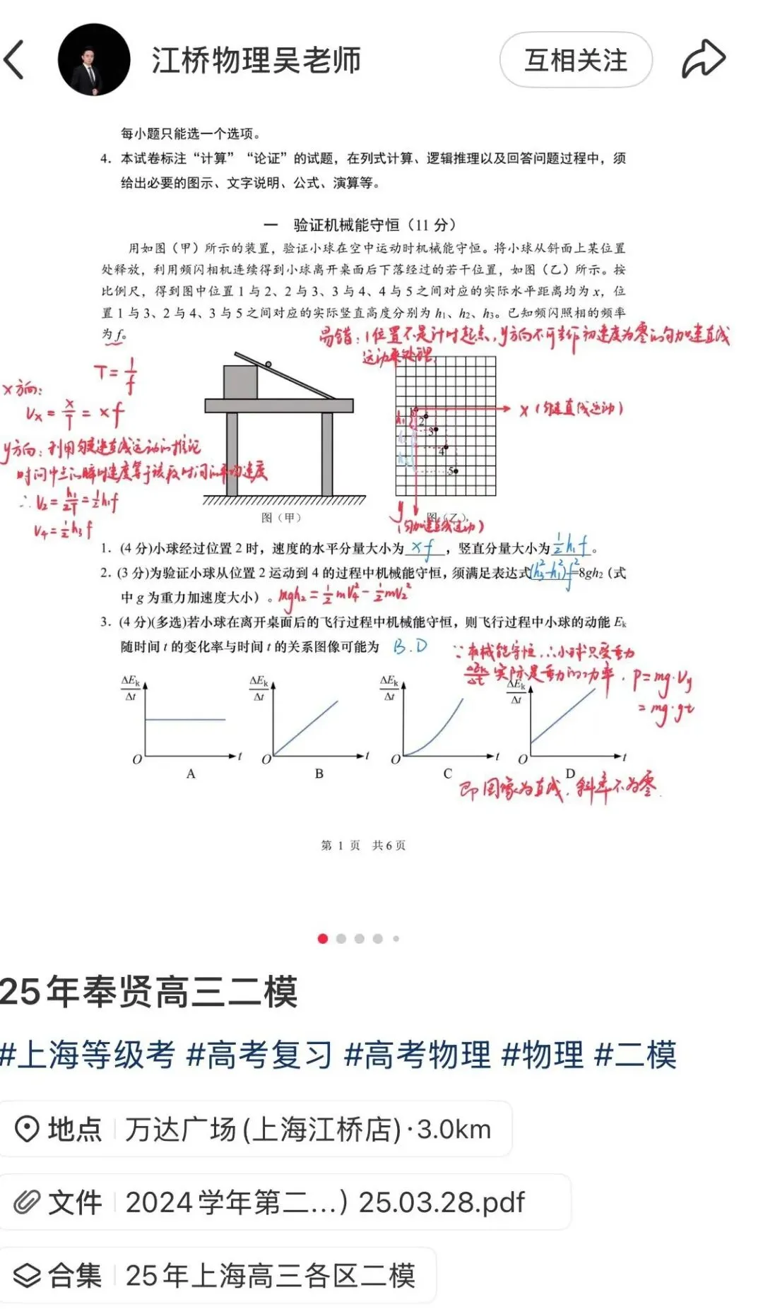 方式二:关注账号“江桥物理吴老师”,小红薯笔记下方免费下载