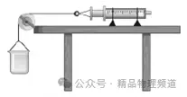 16.在测量大气压强的实验中,为消除活塞与针筒间的摩擦力对实验的影响,某同学设计了如图所示装置。将注射器筒固定在水平桌面上,把活塞推至注射器筒底端,用橡皮帽封住注射器的小孔,活塞通过水平细线与烧杯相连。向烧杯中缓慢加水,当活塞刚开始向左滑动时,测得杯中水的质量为880g;然后向外缓慢抽水,当活塞刚开始向右滑动时,测得杯中水的质量为460g。烧杯质量为100g,活塞面积为7.7×10-5m2,g取10N/kg,轮轴间的摩擦和细线重不计。则所测大气压的值应为Pa。