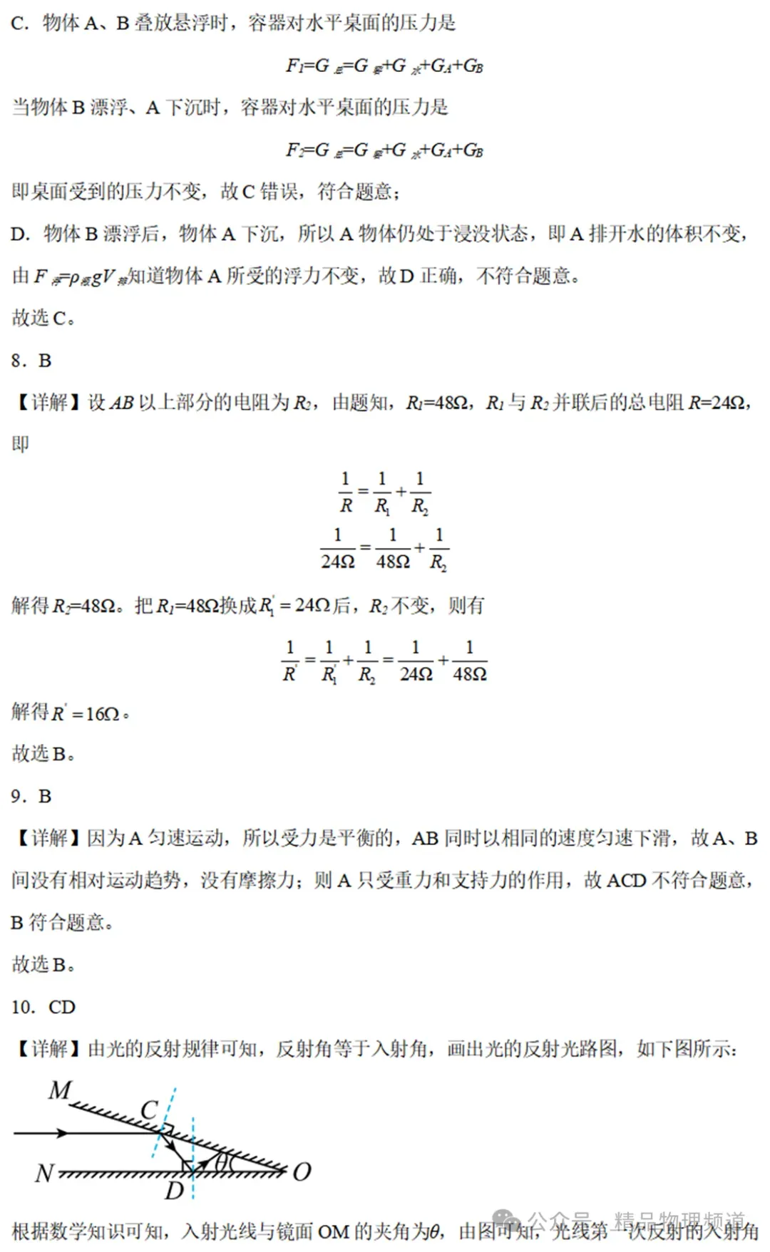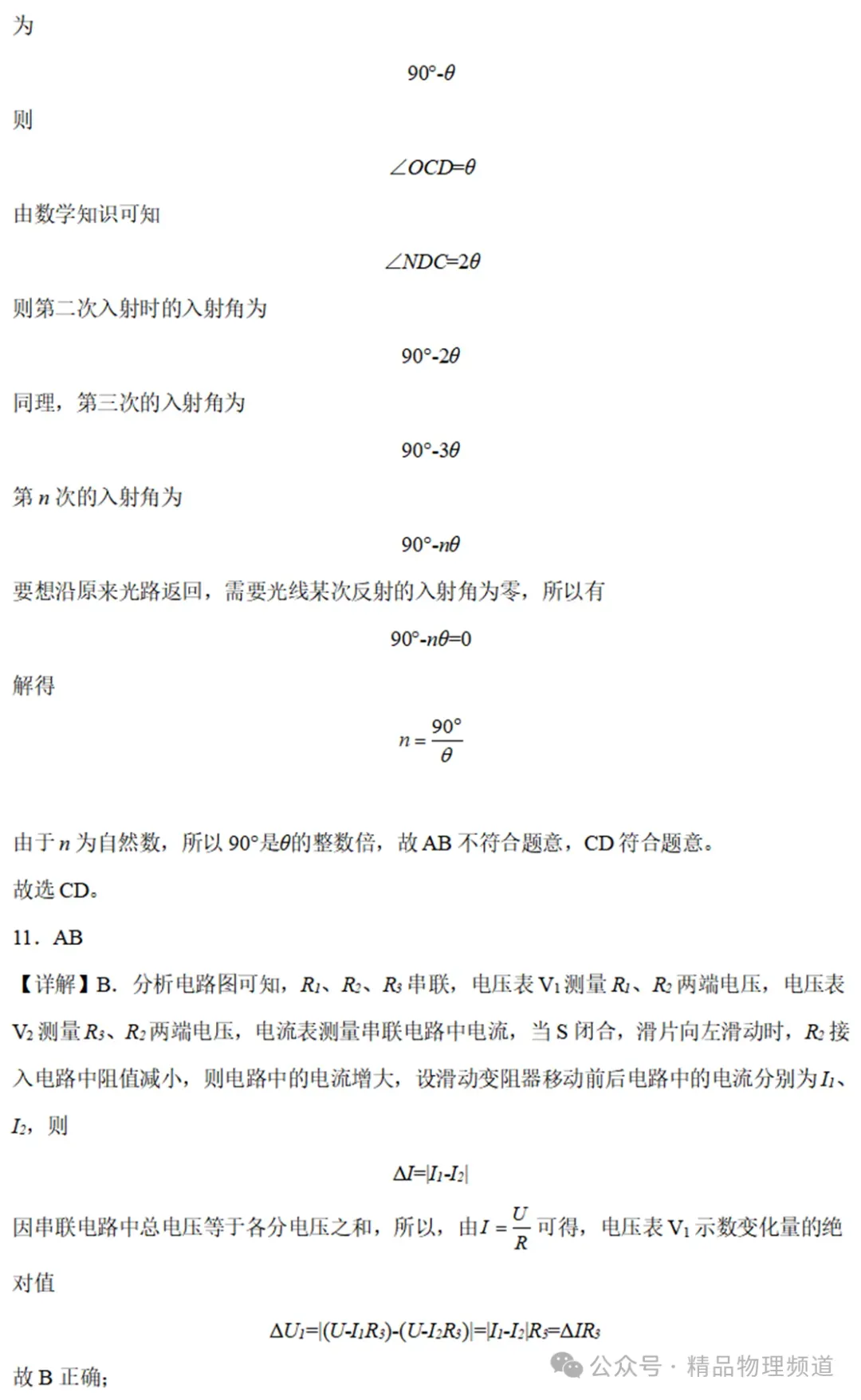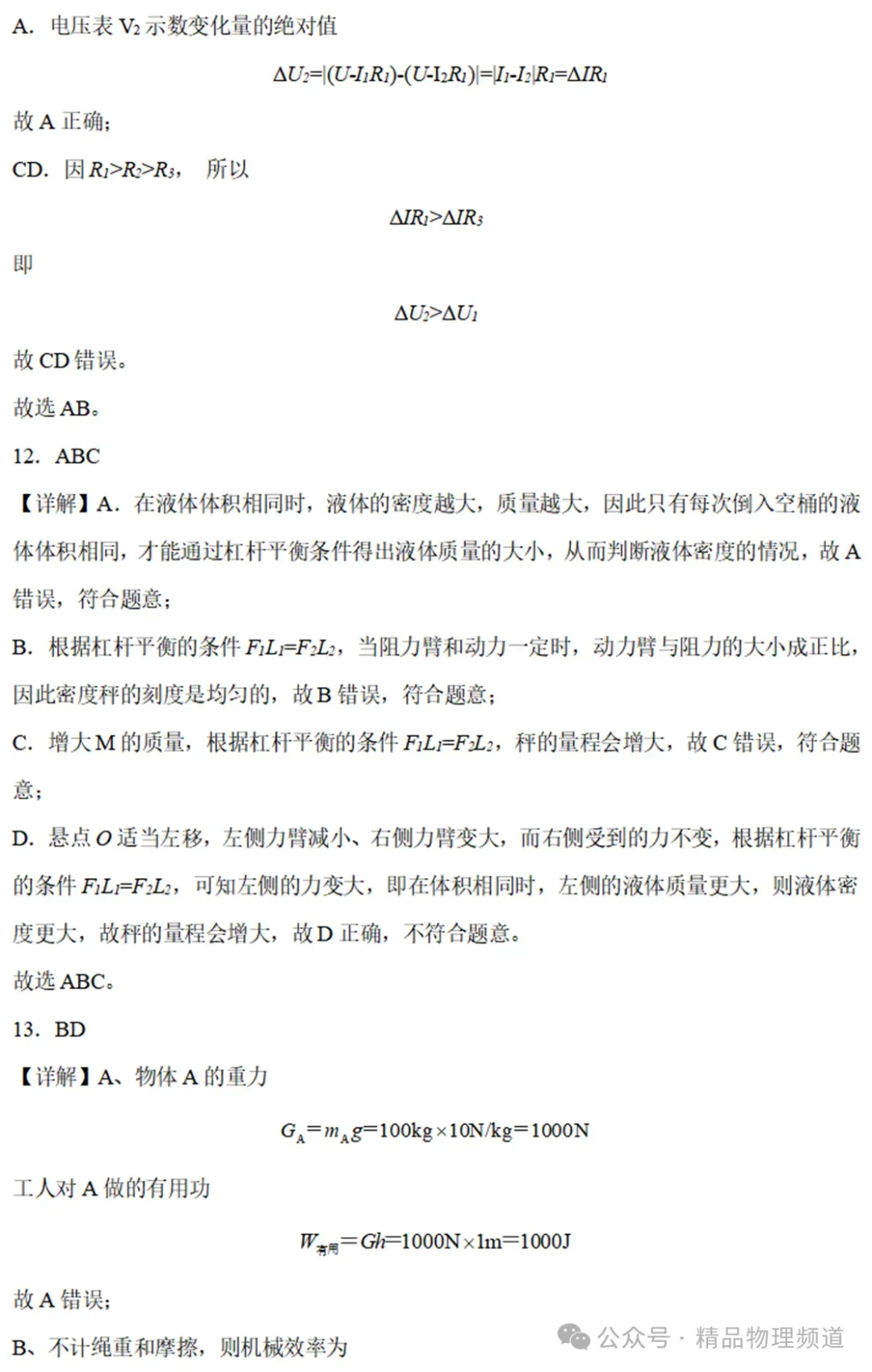 10.如图所示,平面镜M与N的夹角为θ,一条平行于平面ON的光线经过两个平面镜的多次反射后,能够沿着原来的光路返回,则两平面镜之间的夹角可能( )11.如图所示,电源电压保持不变,电阻R1>R2>R3,当S闭合,滑片P向左滑动时,电压表V1、V2、电流表A的示数变化的绝对值分别为△U1、△U2、△I,则下列判断正确的是( )12.如图所示,小明用一轻质杠杆自制简易密度秤的过程中,在A端的空桶内分别注入密度已知的不同液体,改变物体M悬挂点B的位置,当杠杆在水平位置平衡时,在M悬挂点处标出相应液体的密度值。下列关于密度秤制作的说法中,不正确的是( )