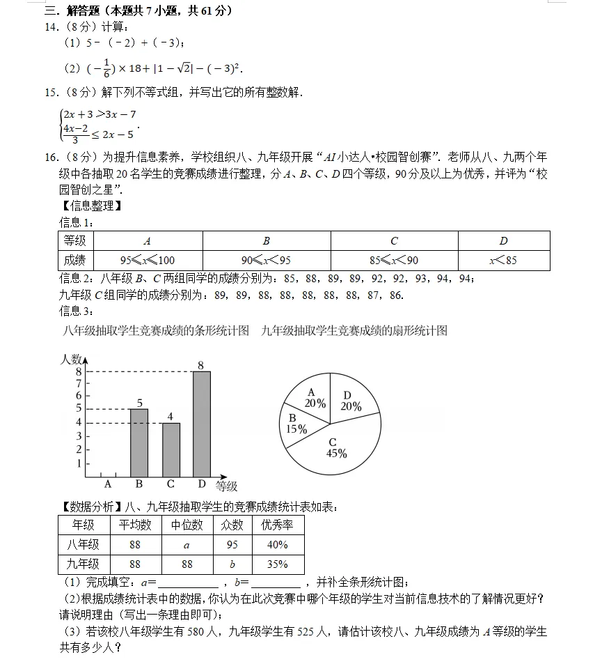 初中数学有十多个版本,公众号无法全部发布,需要其他版本试卷请家长联系刘老师