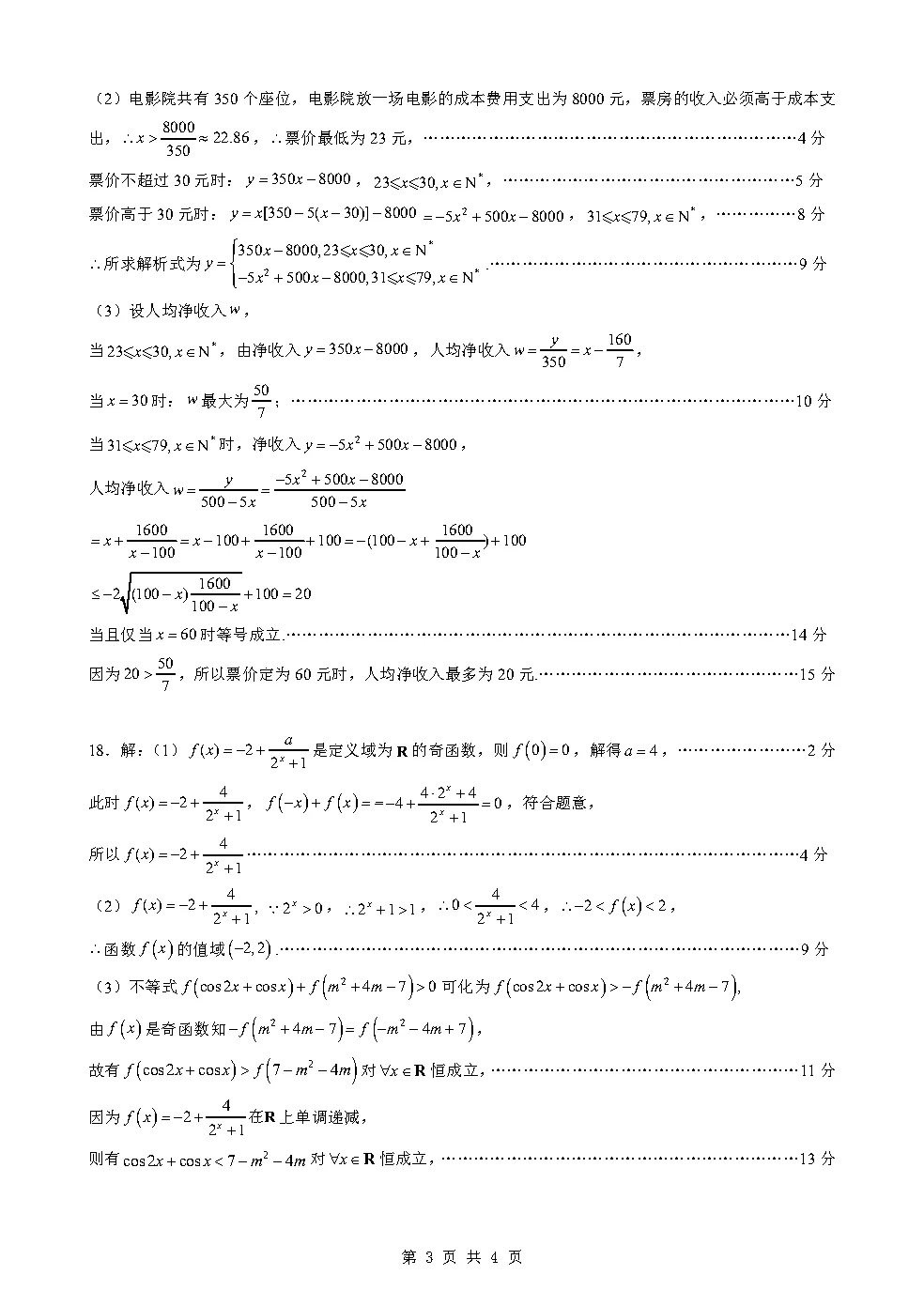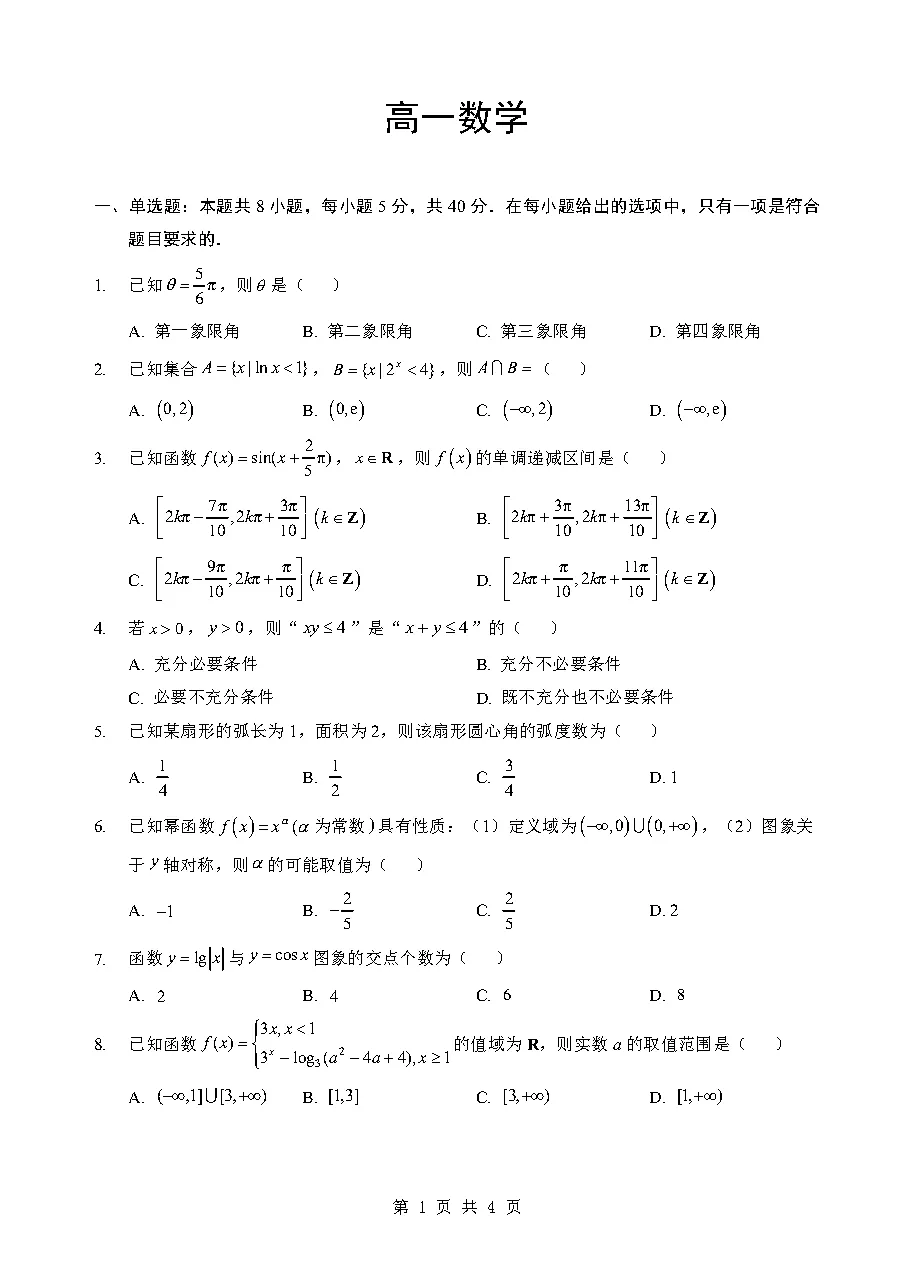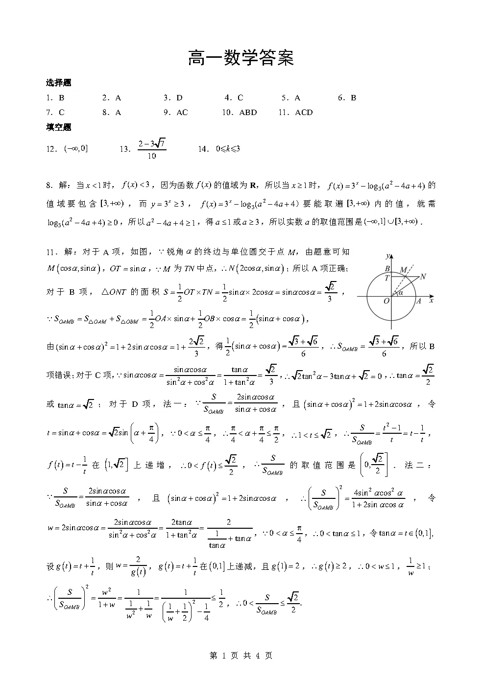 高一3月检测数学试卷及答案