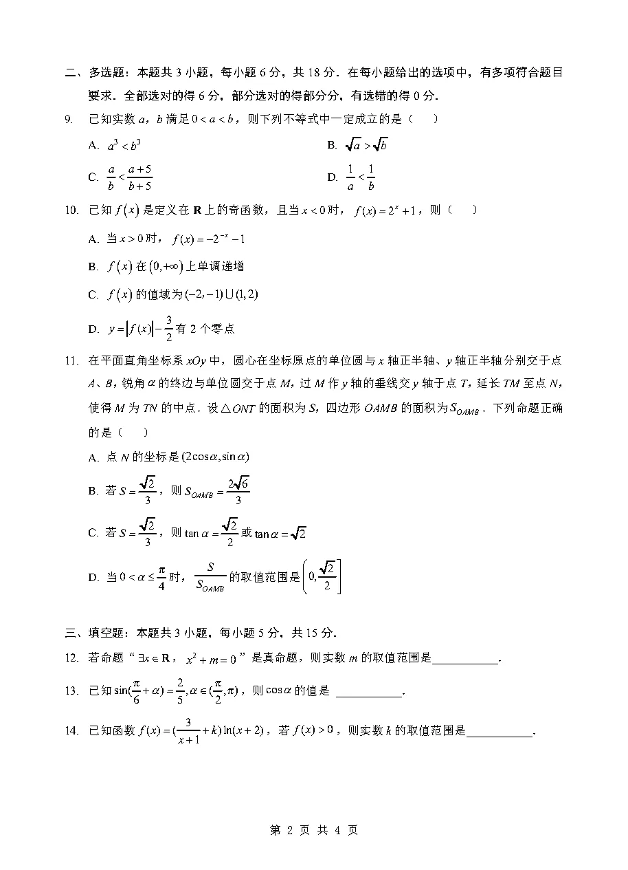 广东省26届高三3月一模数学试卷