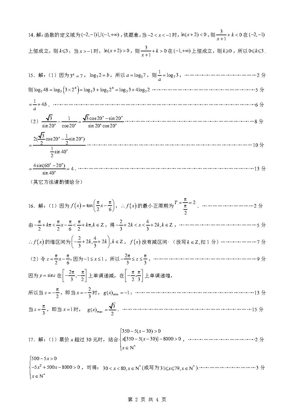 >高一3月检测数学试卷及答案