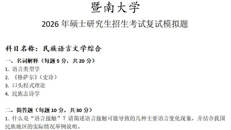 当前位置:首页>考研真题>暨南大学民族语言文学综合考研复试真题模拟