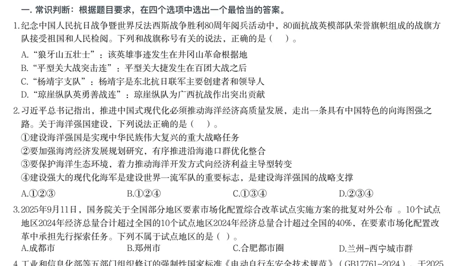 全国事业编联考D类综合应用能力【15-25】