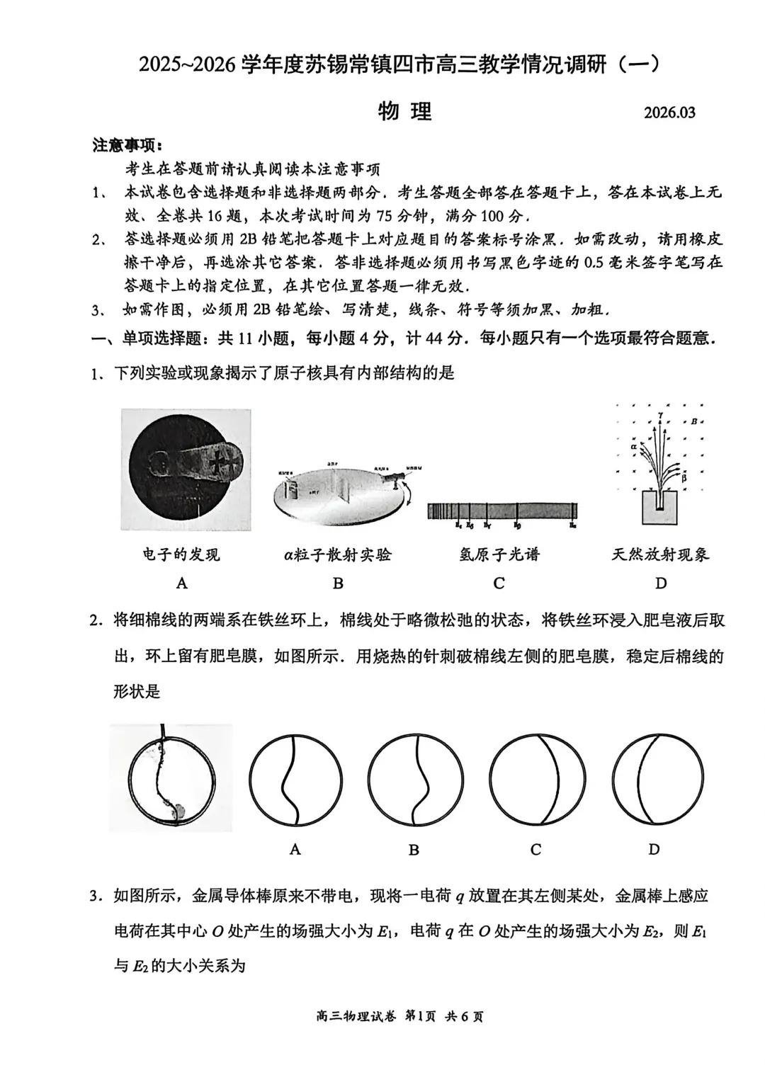 高三物理之苏锡常镇一模试卷