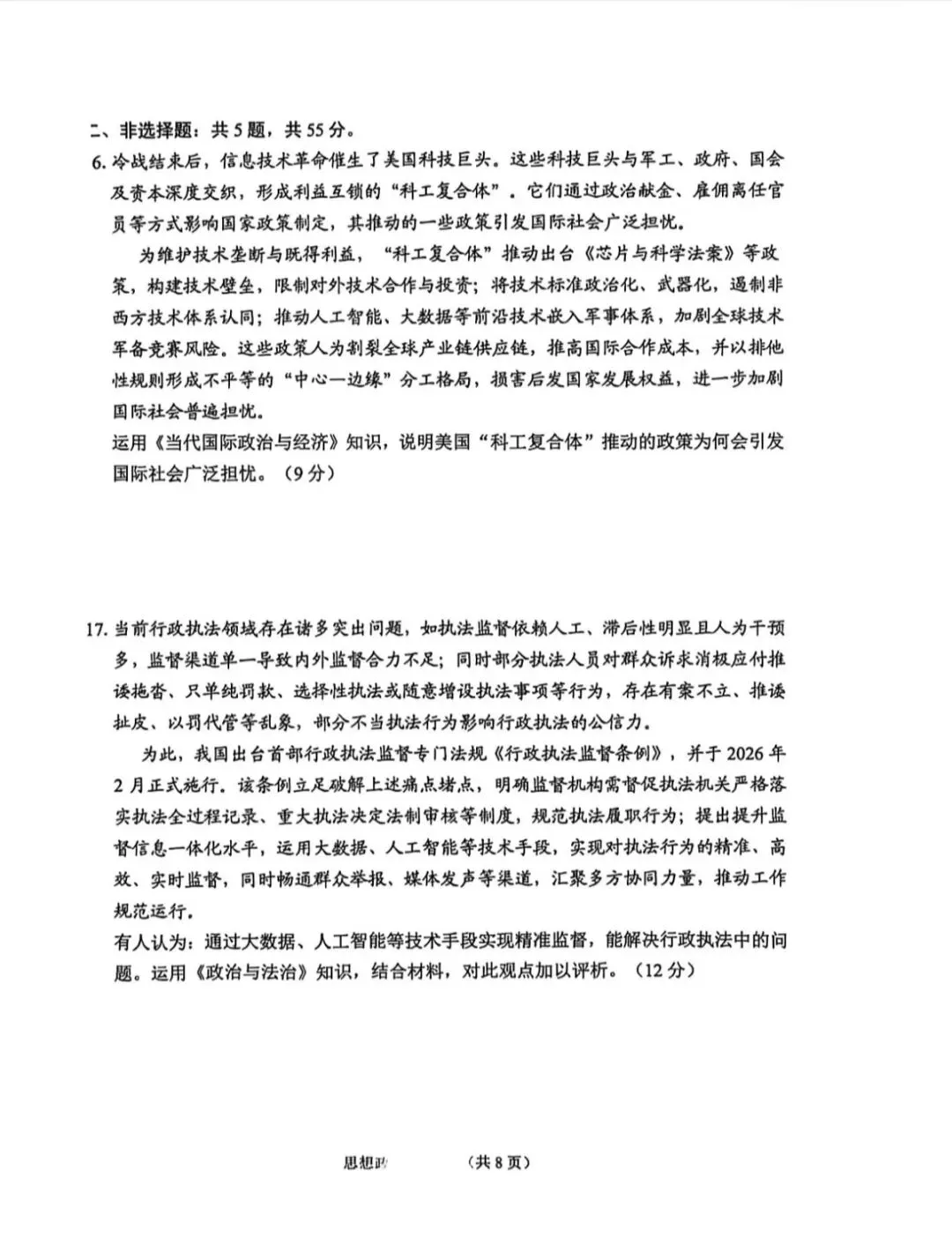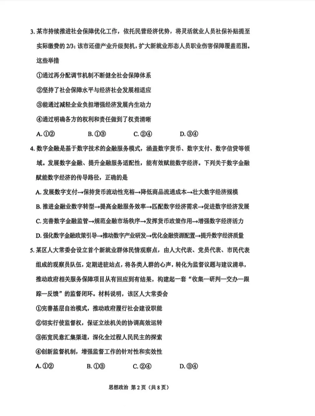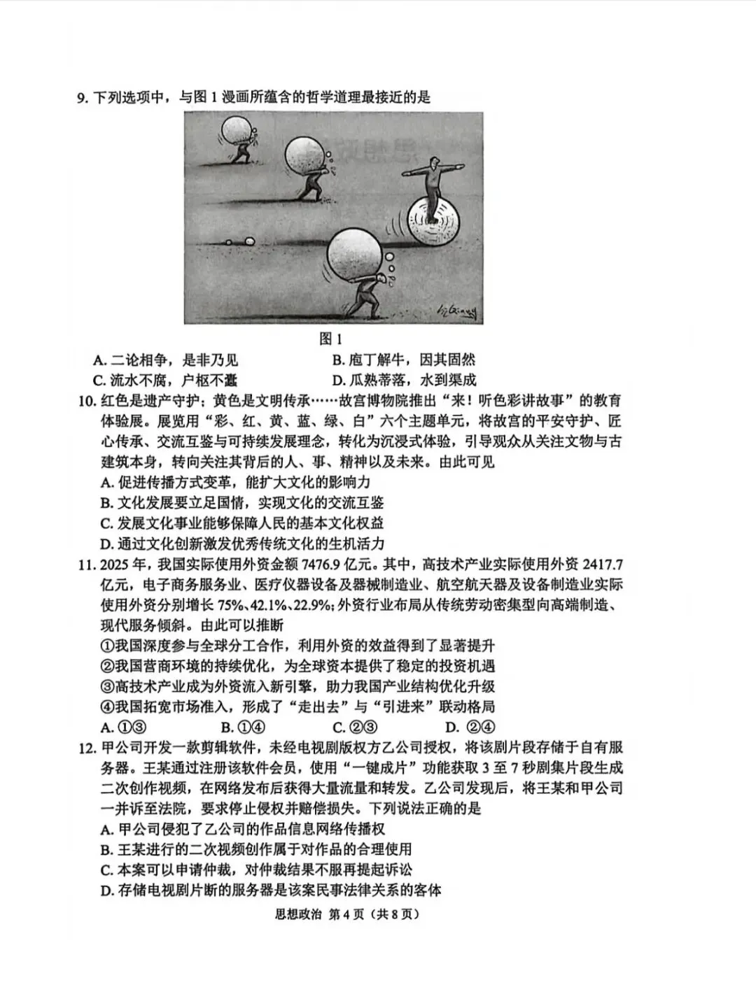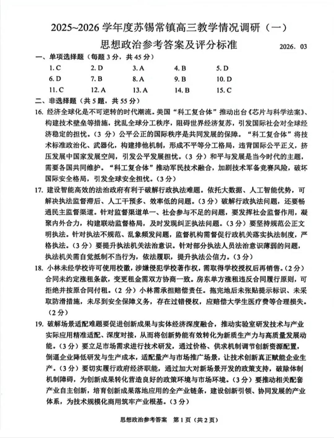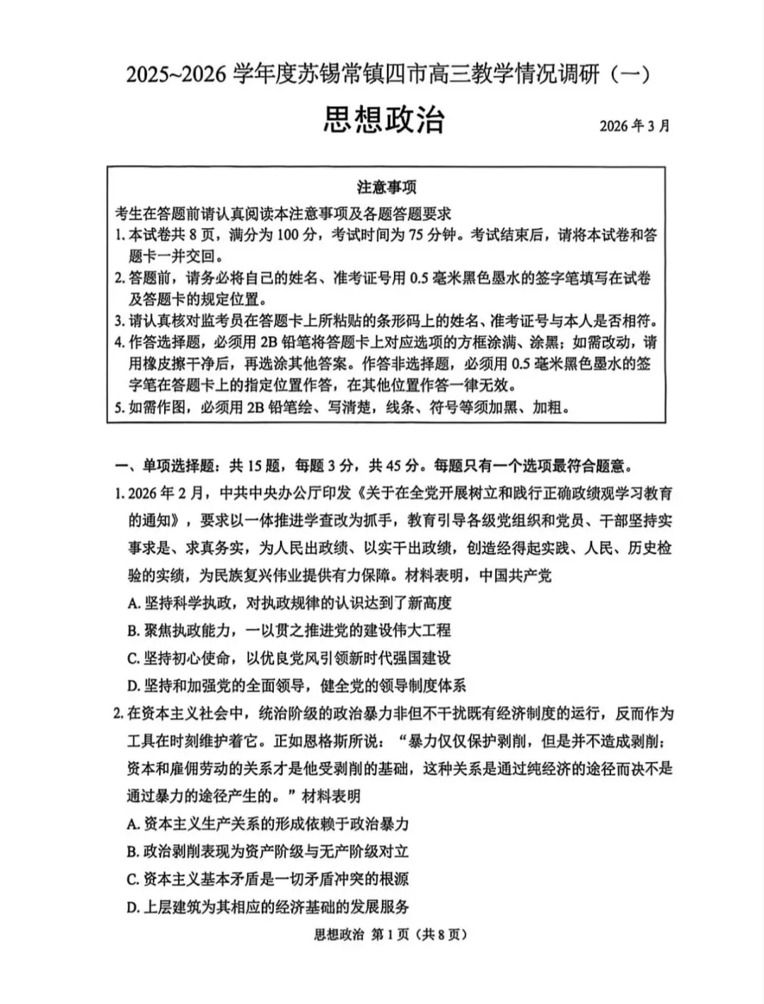 >江苏省2026年苏锡常镇一模思想政治试卷和参考答案