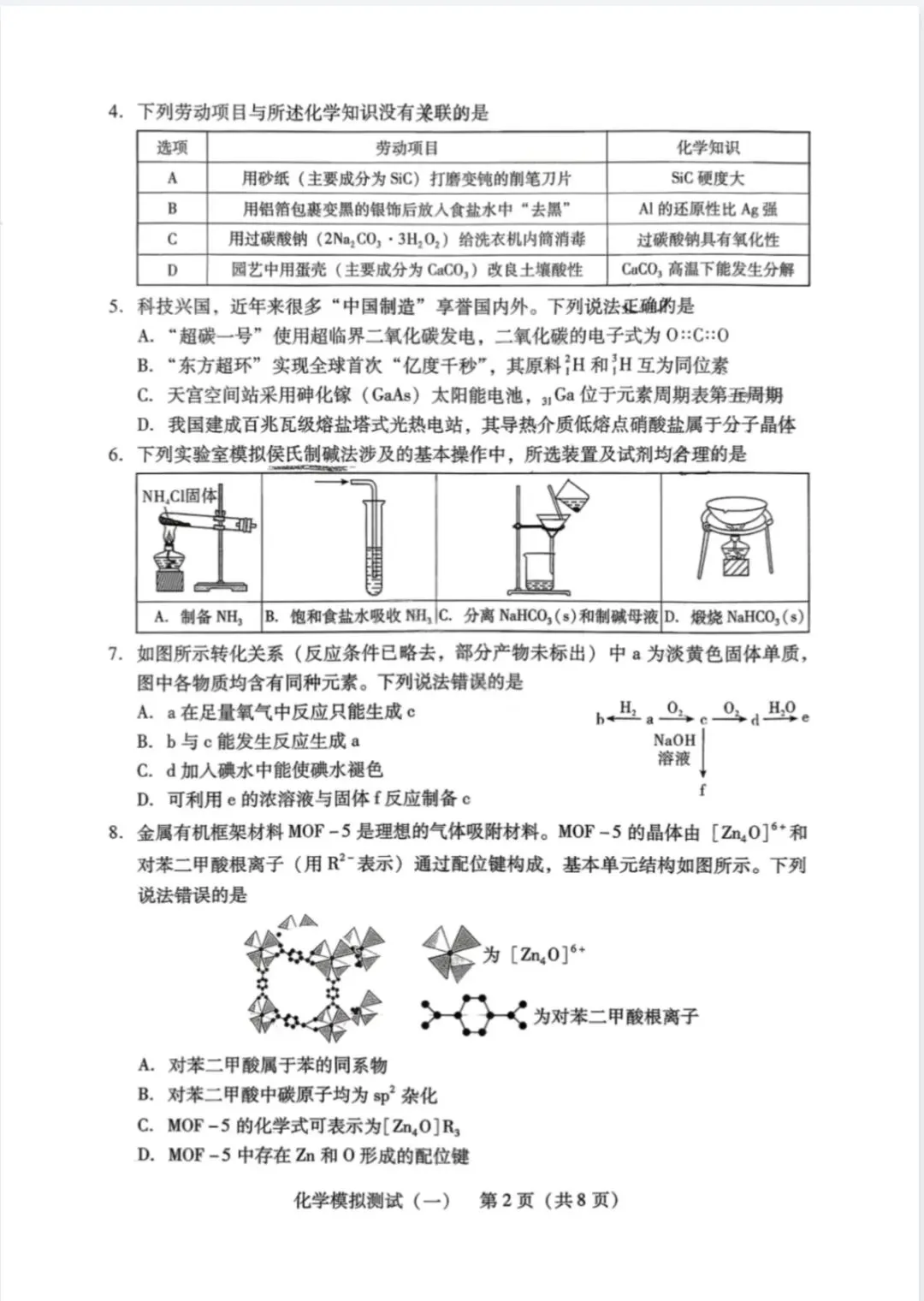 2026 年初中学业水平考试化学模拟试卷(一)(人教版)