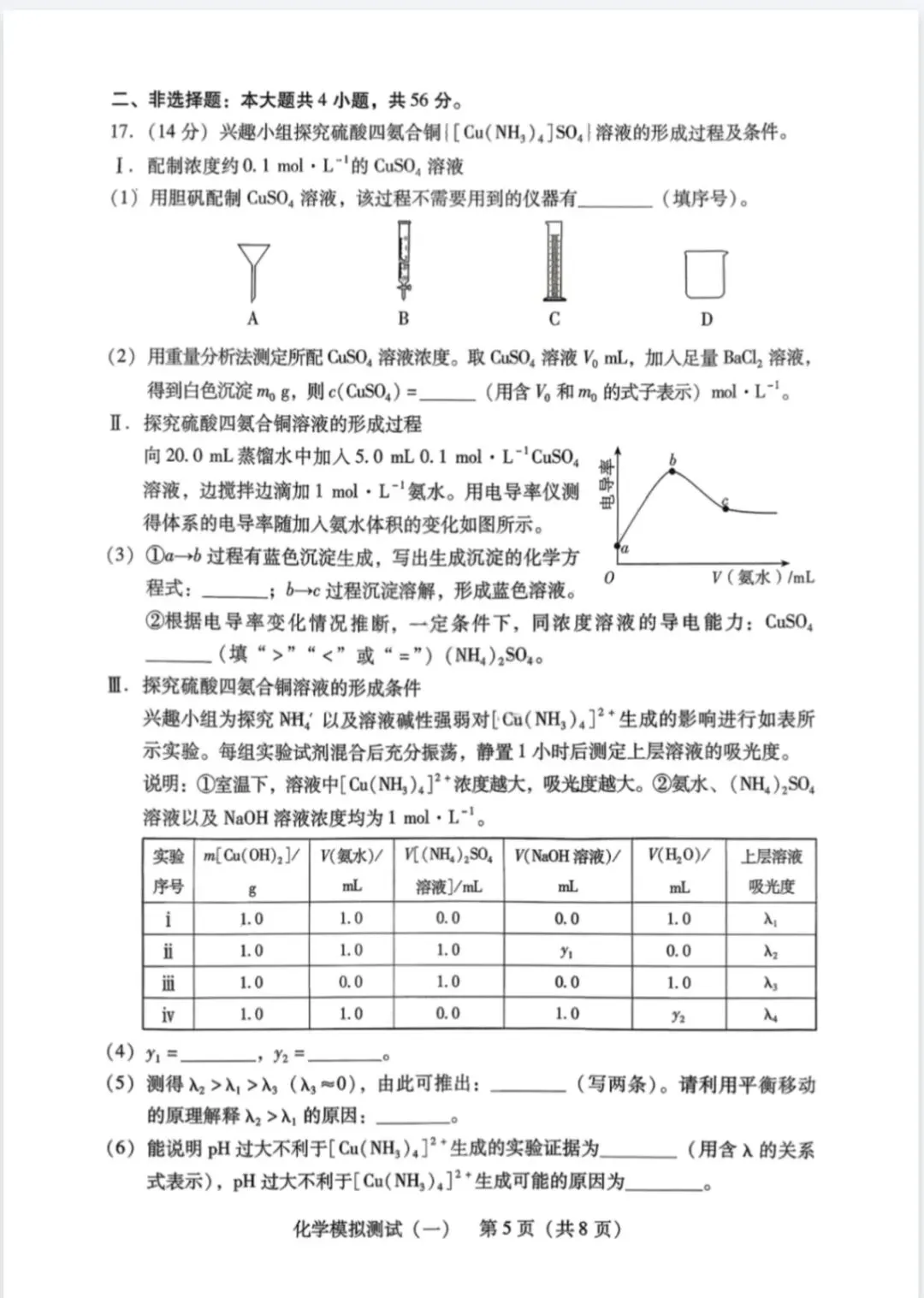 2026年3月广东高三一模化学试卷和参考答案