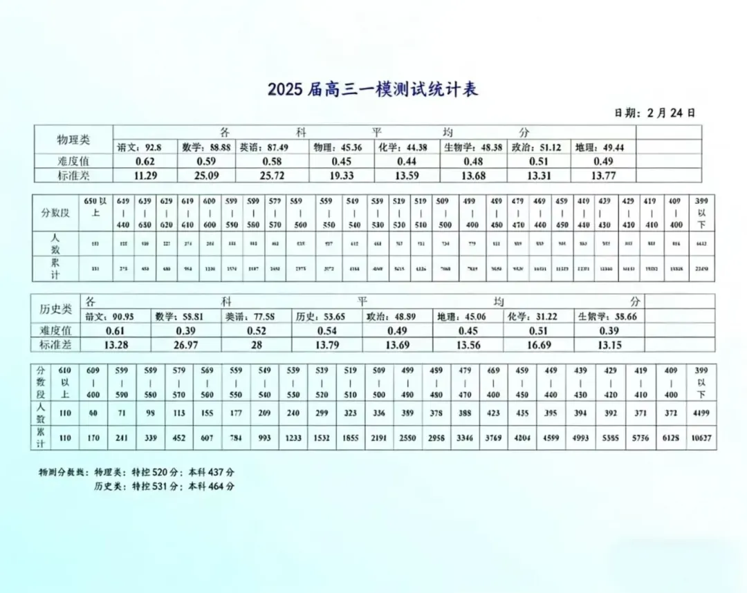 南昌市2025届高三一模统计表(点击看大图)