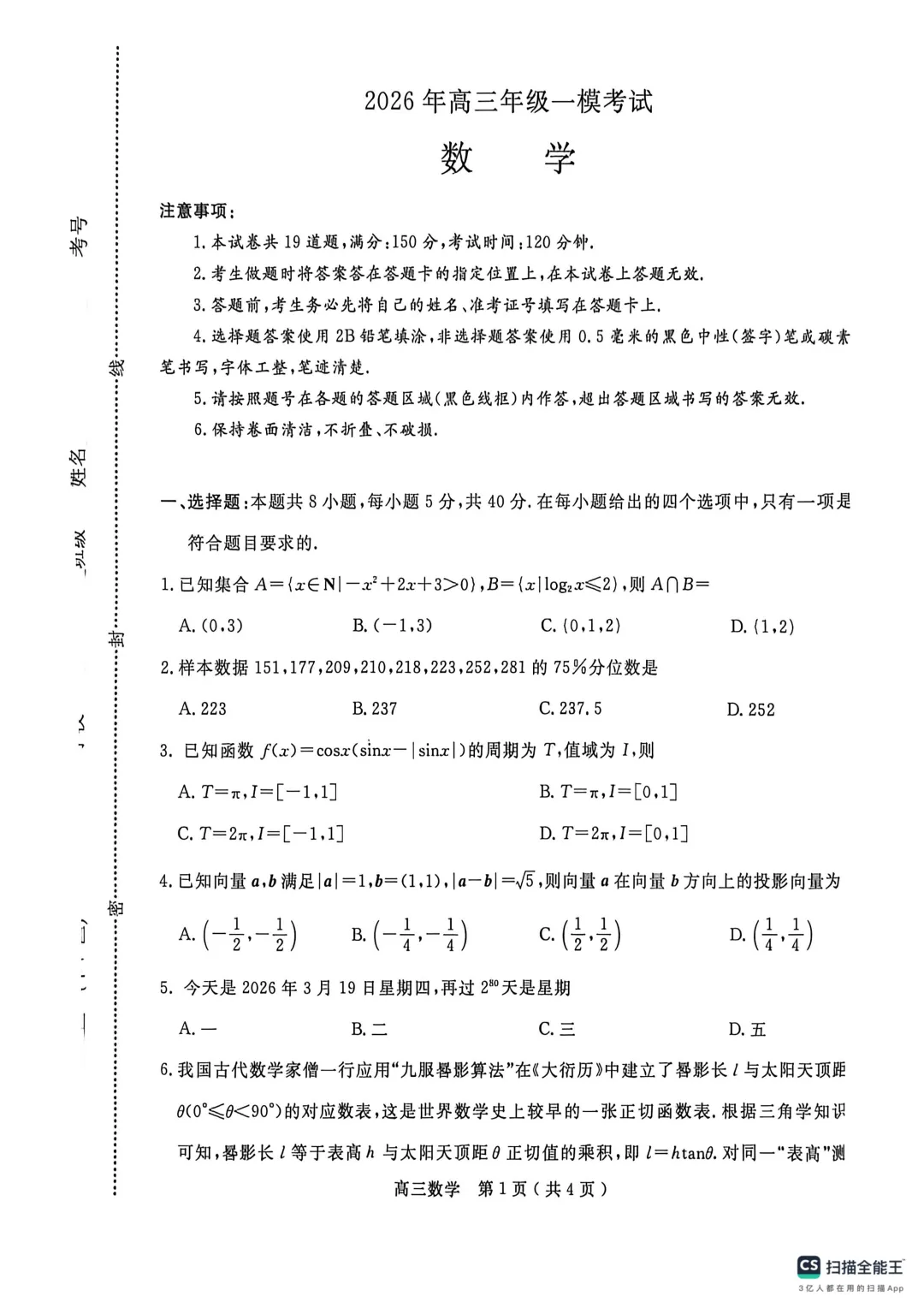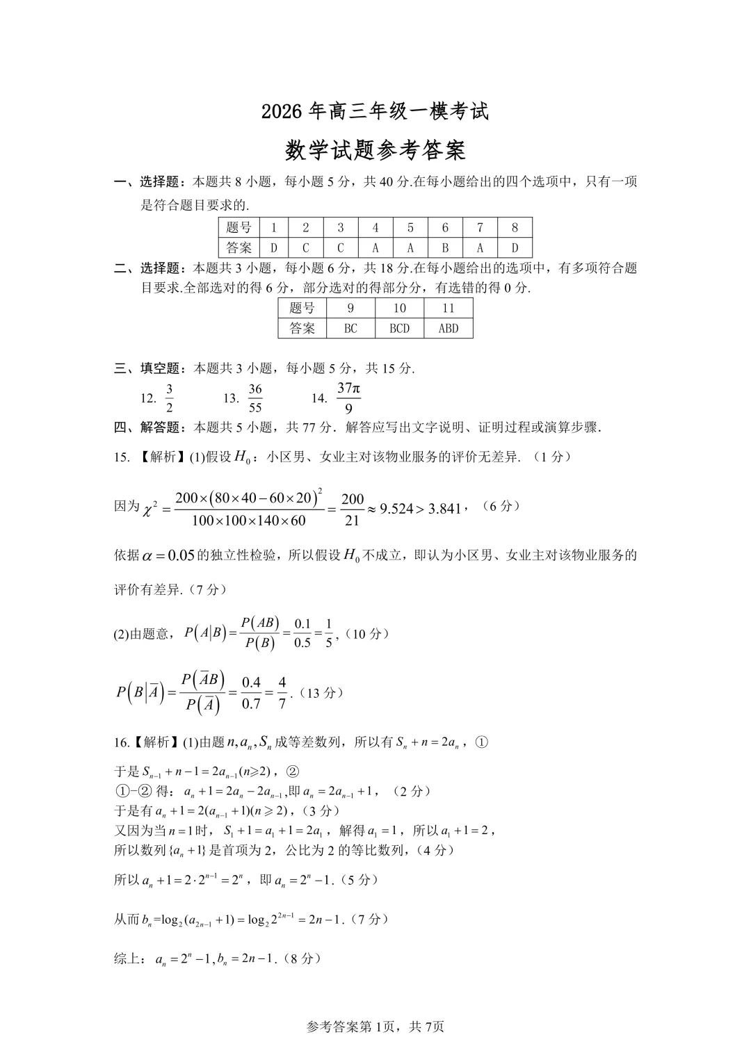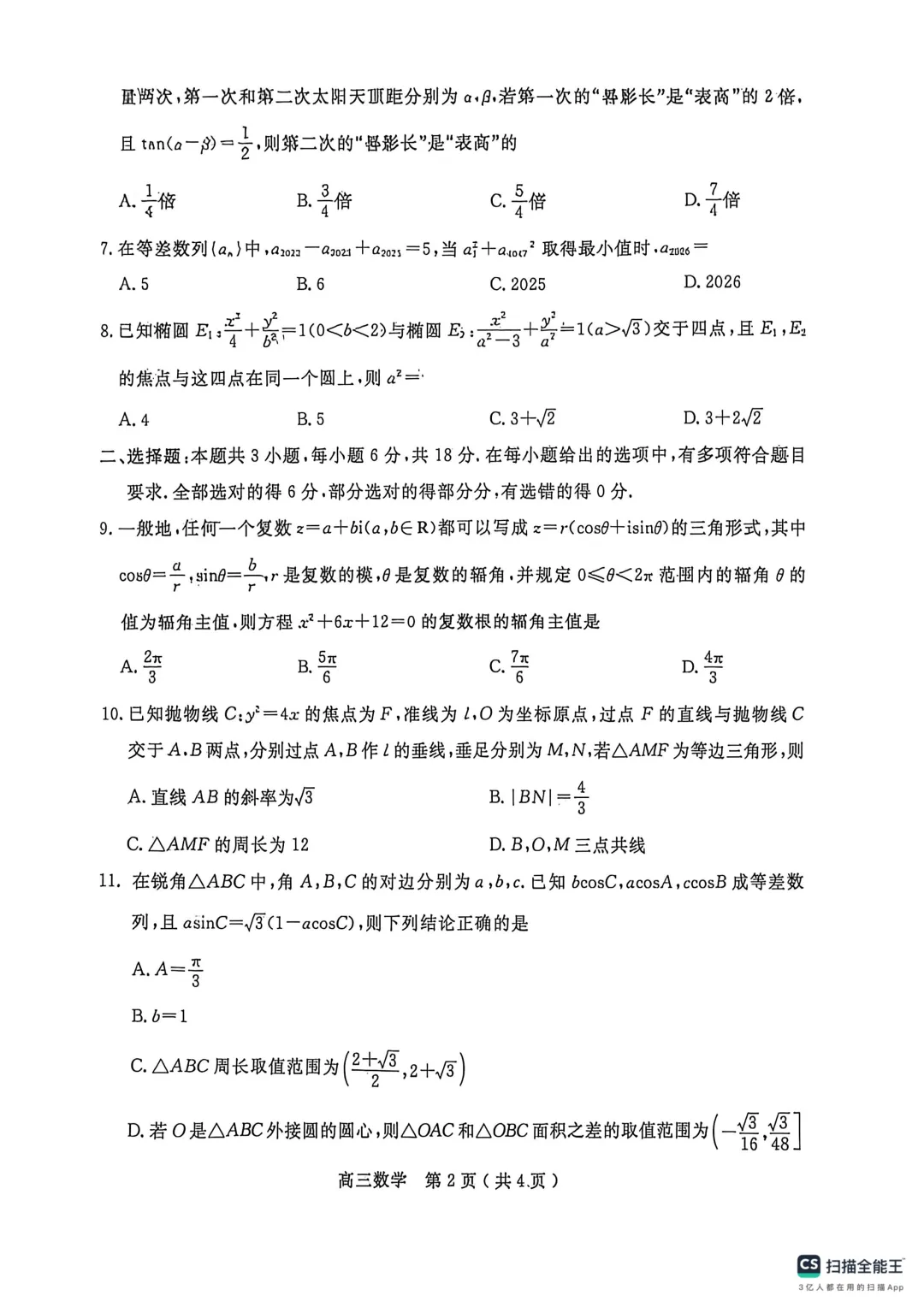 衡水金卷2026届高三年级联考数学试卷+参考答案