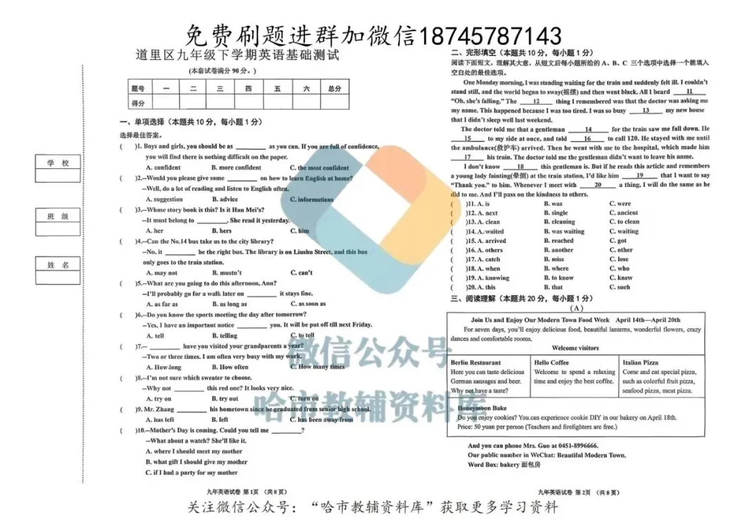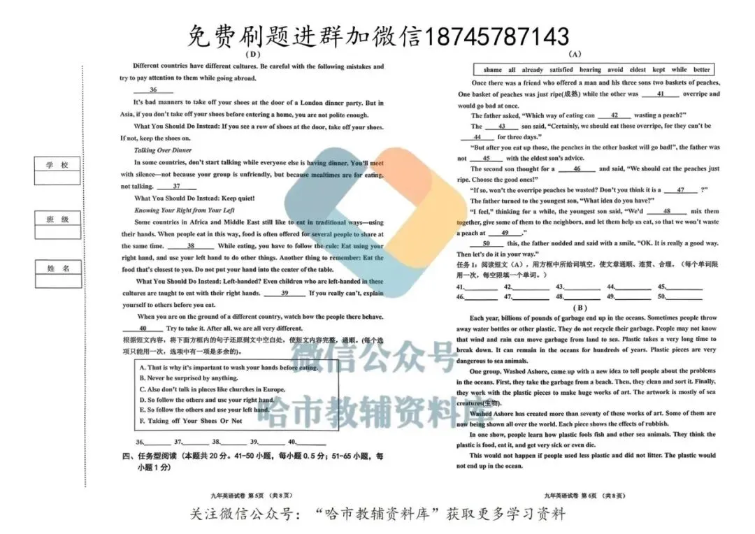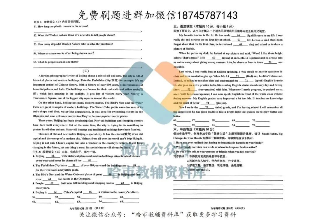 弘文资源群每天免费提供名校月考题新题型,进群添加微信!