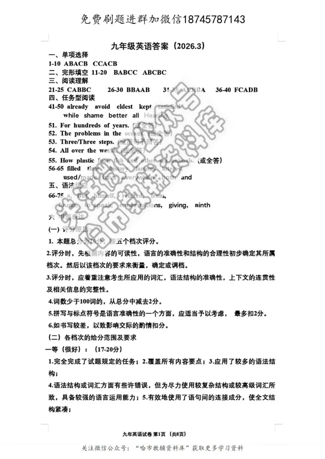 考后估分!2026广州一模考试《英语》真题答案(含解析)