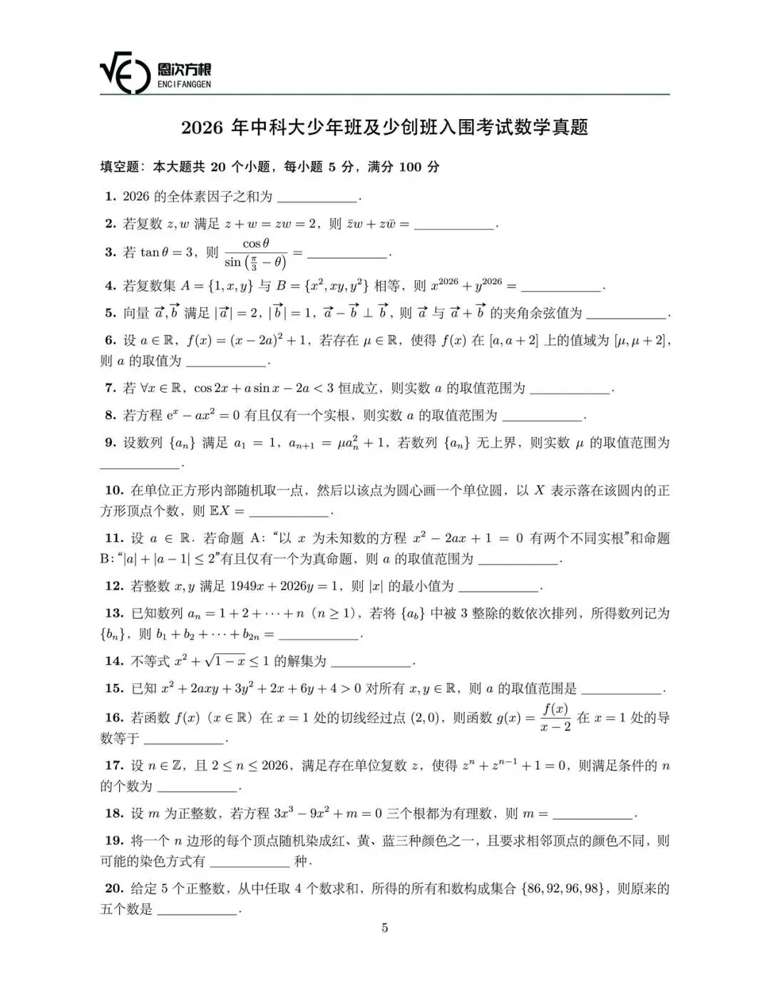 >2026年中科大少年班及创新试点班入围考试数学真题,你会几题?