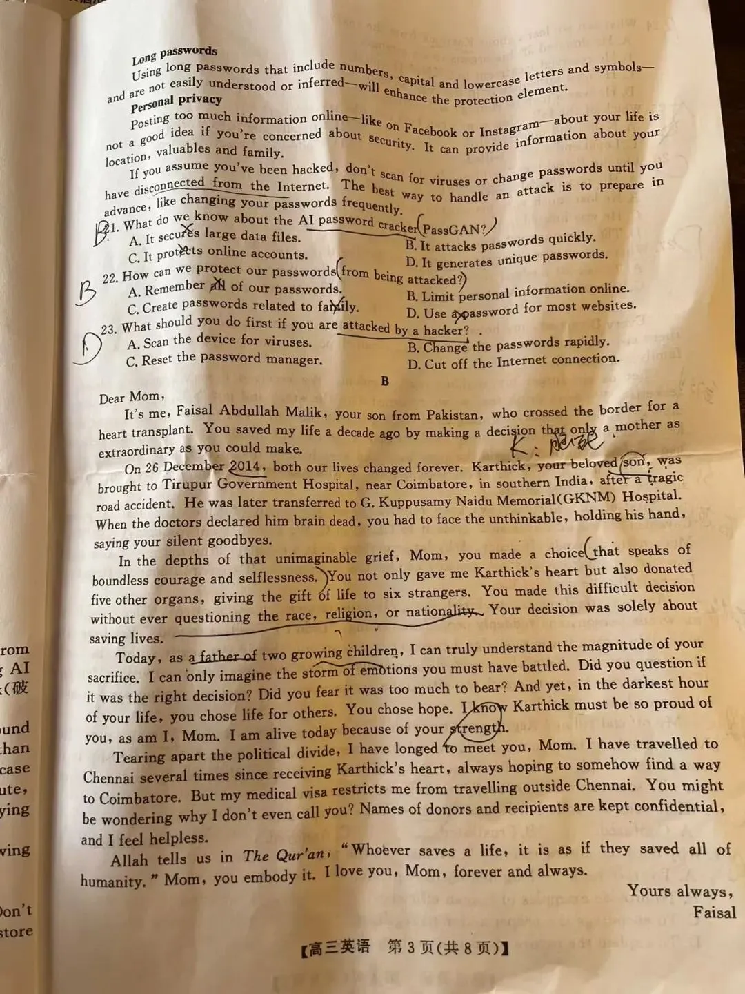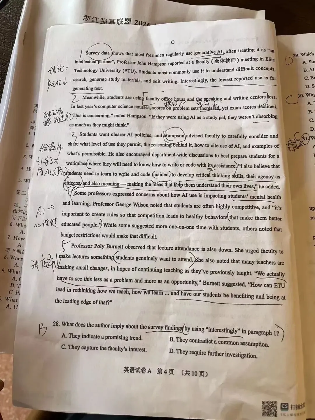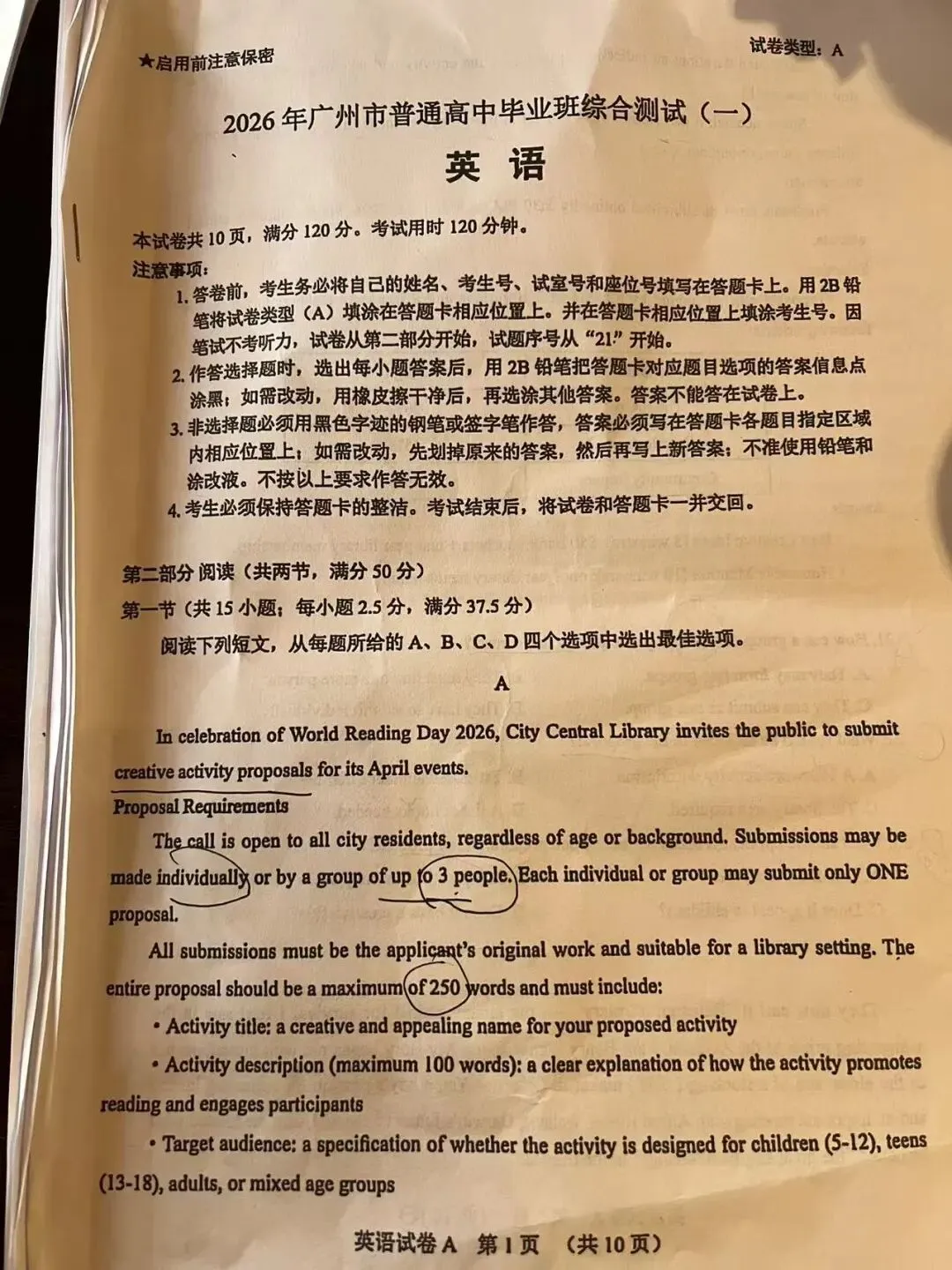 先说结论:120分以下做强基联盟;120分以上做广州一模我们老广这么多年也是终于硬气了一回!今年的这套卷子有点高考的样子了。要说高考是什么样子呢?就是那种你说它很难,你又找不到证据,因为没有很多的超纲词或者长难句。你说它容易那也不是那么容易做全对,而且非常容易踩坑!!!!图片为20老师潦草的做题痕迹,完整试卷在文末链接,自行下载。20老师有空就会发一些有趣有用的英语干货,还有海量的英语学习资料!