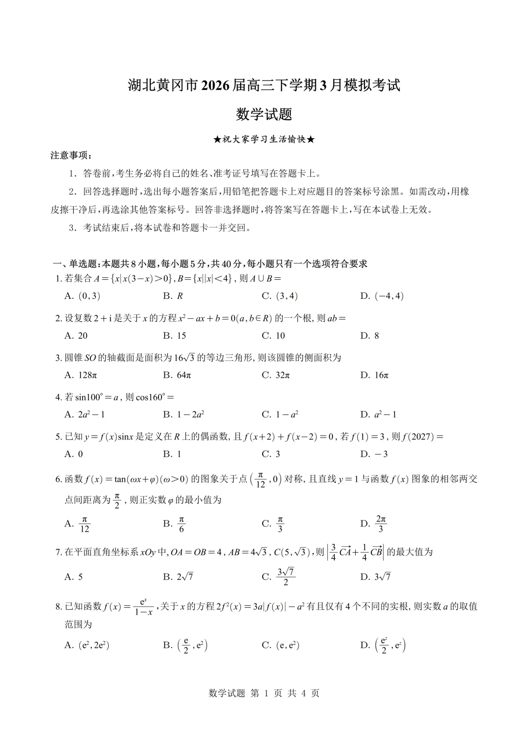 湖北升学通3月17日消息:今天,2026届黄冈市高三3月调考结束,湖北升学通给大家带来了全科试卷及答案内容,电子版下载方式见文末。